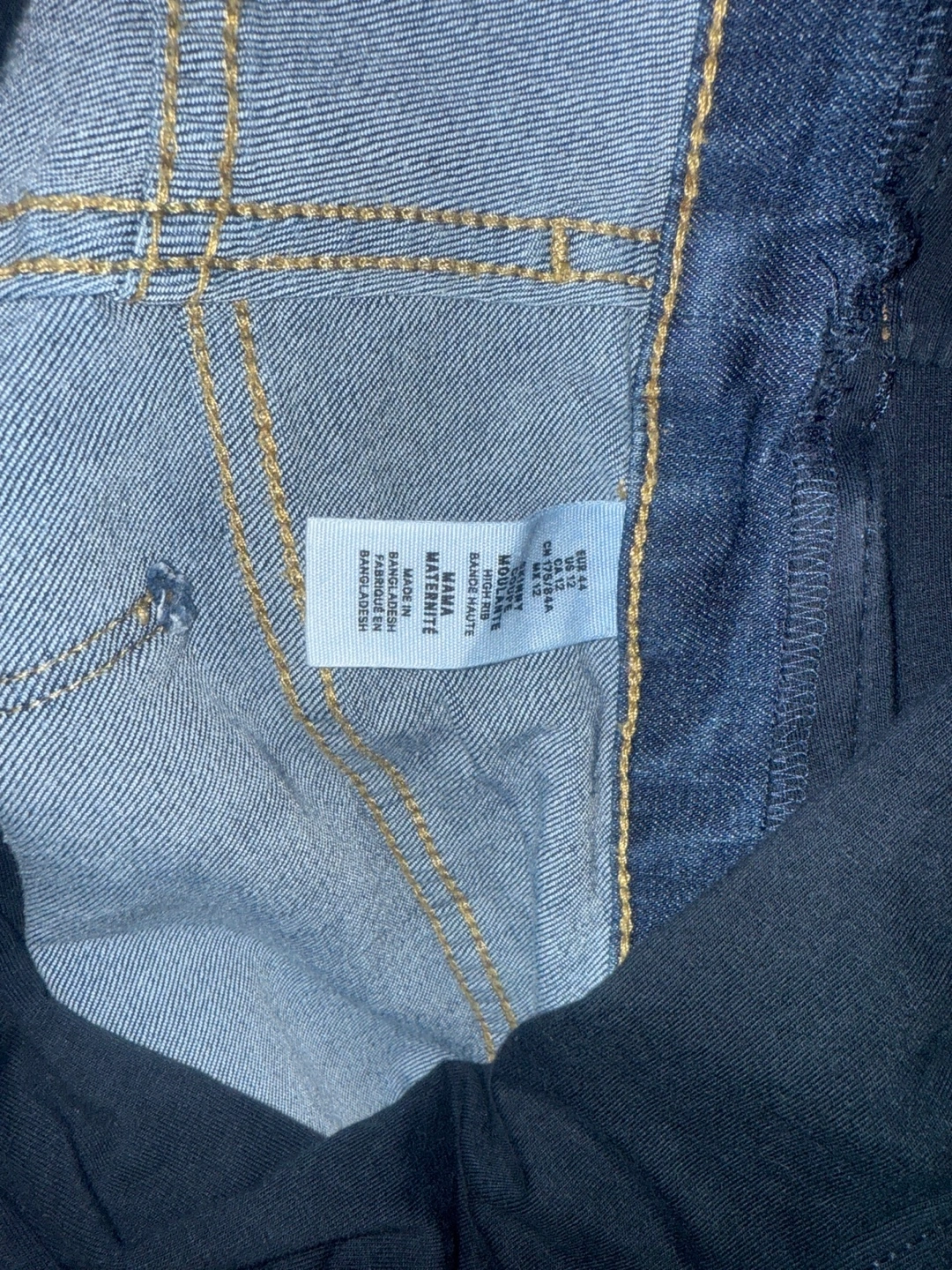 Dark wash maternity jeans. Size 12. Eur 44. Over-the-belly style. Excellent pre-owned condition. Wore twice. Smoke and Pet Free Home💚. Can meet in downtown fairmont too.