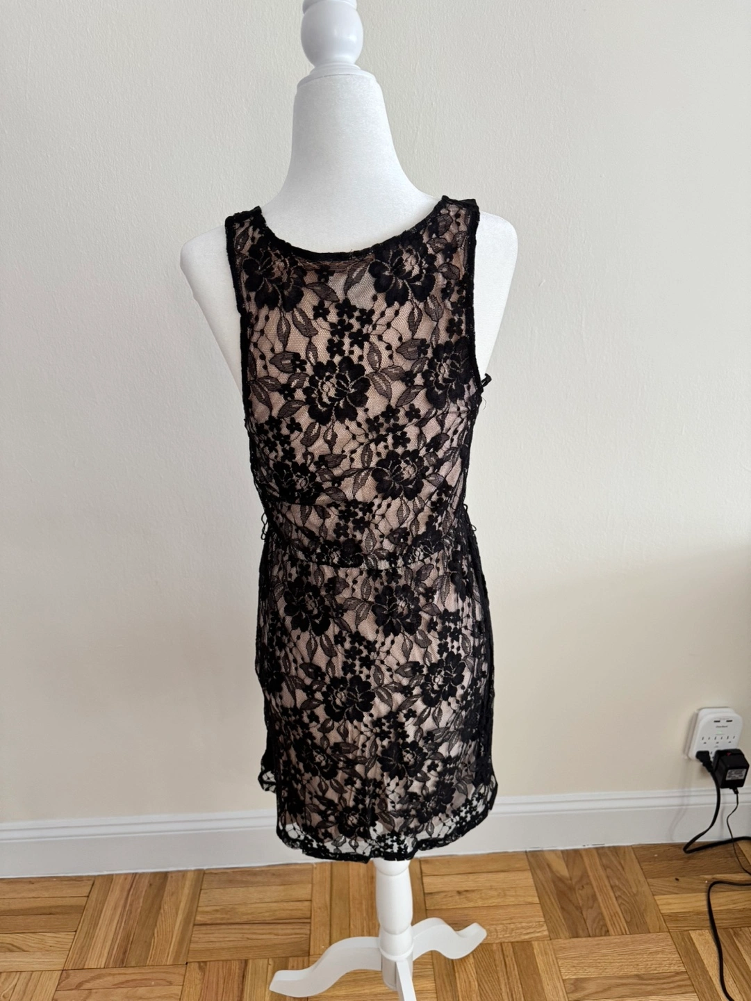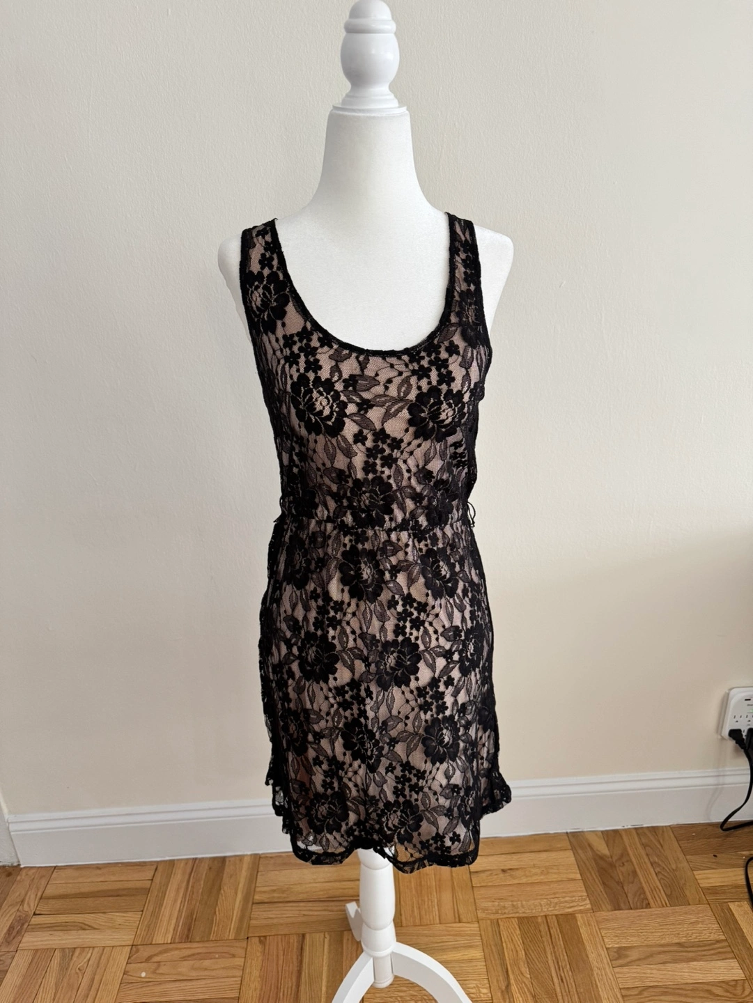 Beautiful black lace mini dress. Size extra small. Lined. Sleeveless. Great for a night out.