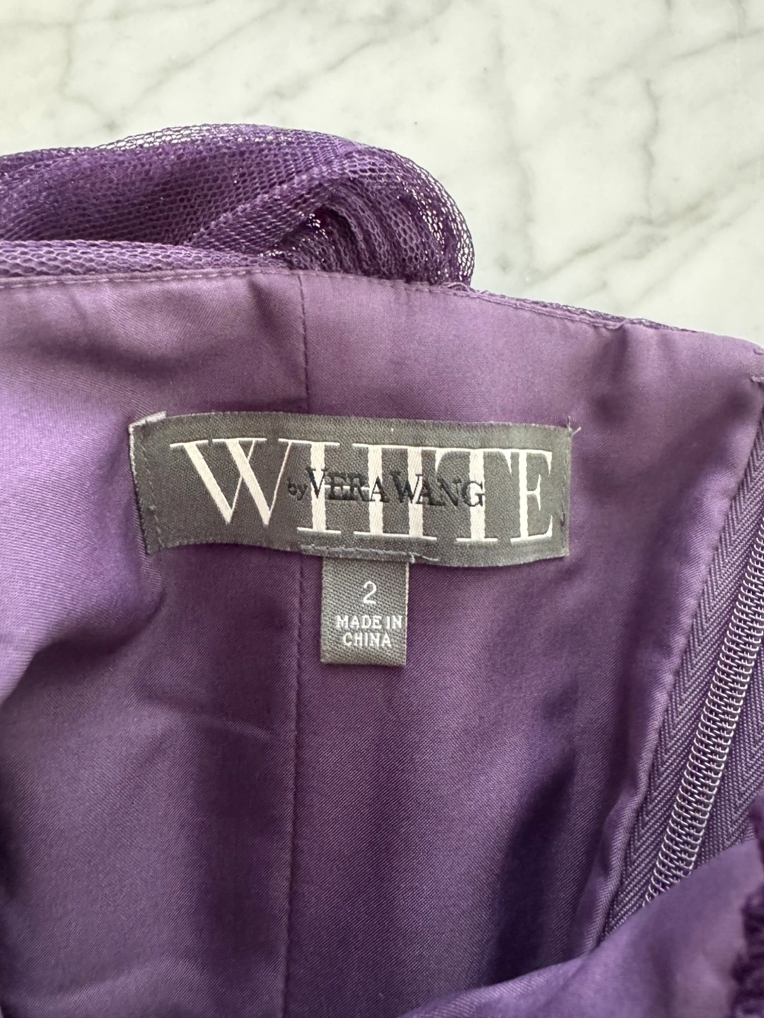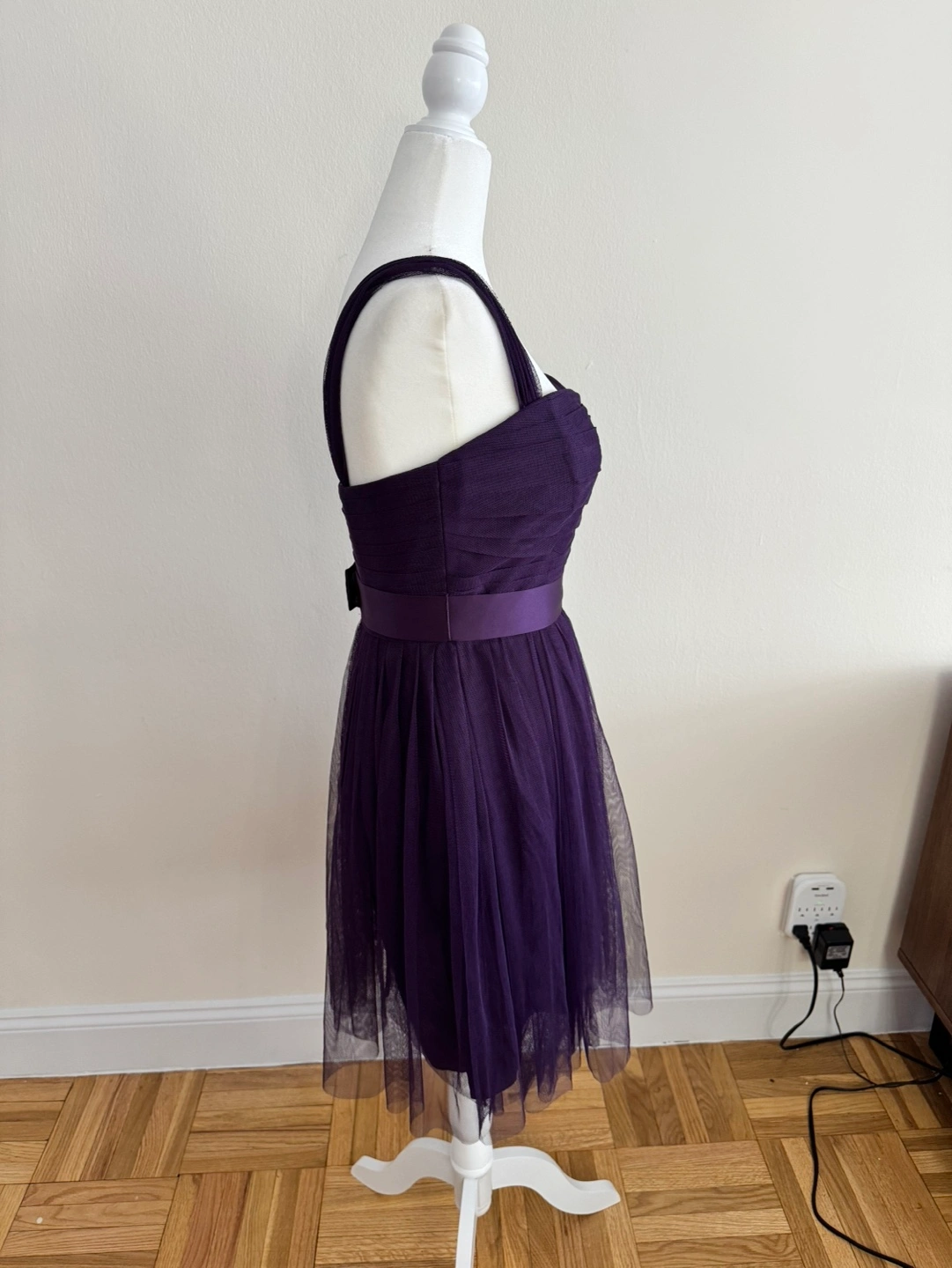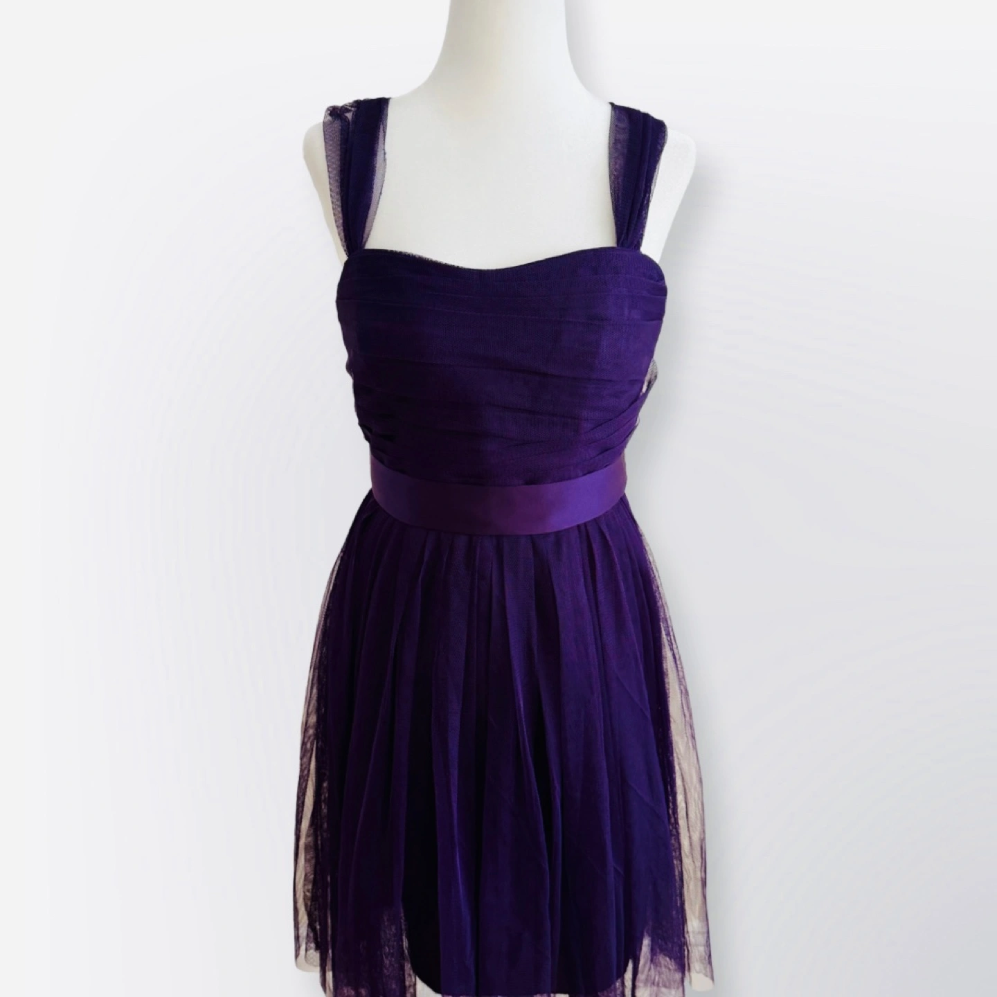 Beautiful purple tulle dress. Size 2. Features a pleated bodice and satin sash. A-line skirt. Sleeveless. Pickup is on 72nd and 1st in Manhattan. Preference given to whoever schedules pickup first.