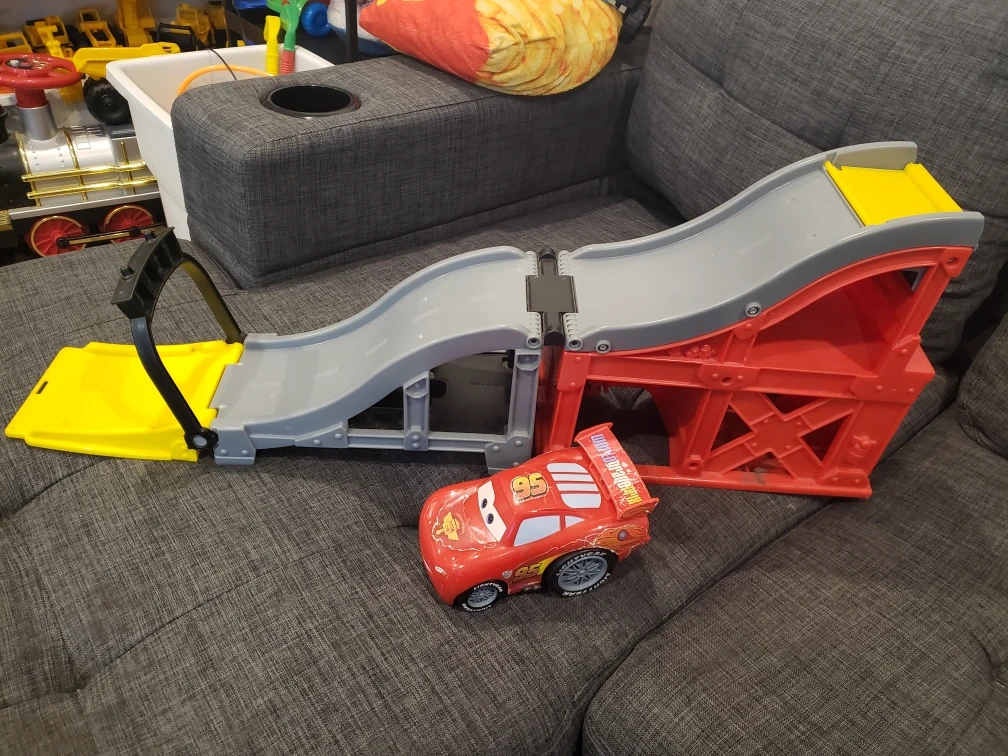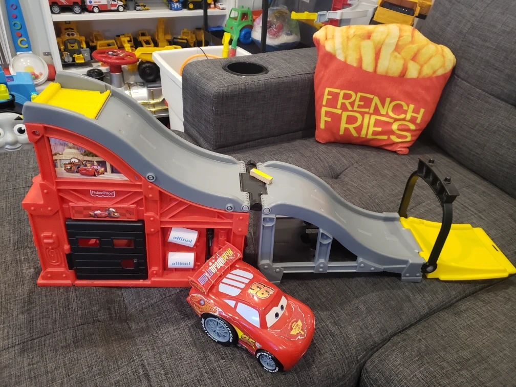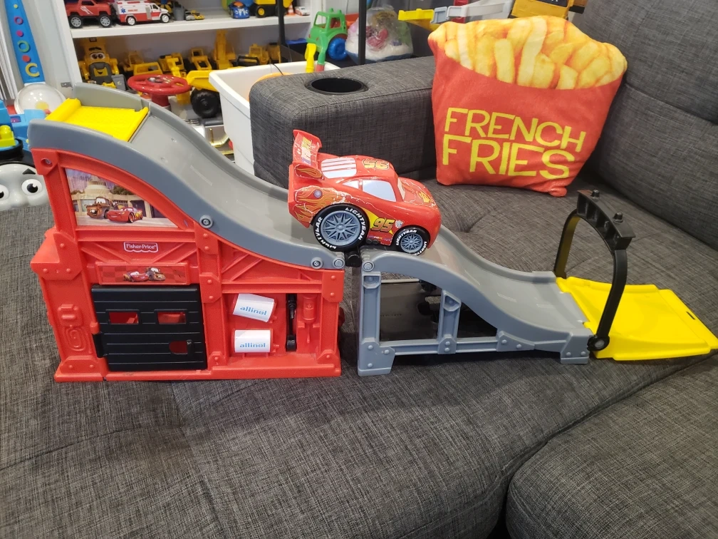 Fun Cars playset. Features ramps, a garage, and Lightning McQueen car. Great for imaginative play.