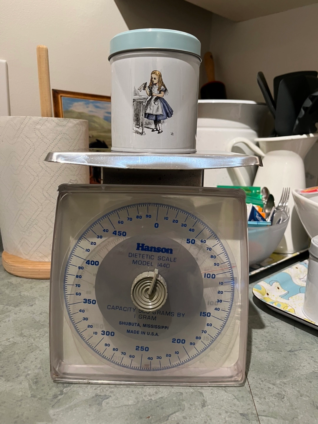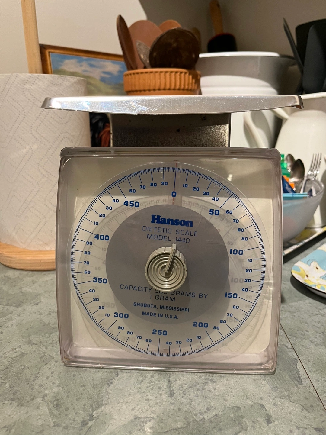 Vintage Hanson Dietetic Scale Model 1440 Capacity 500 Grams from Shubuta Mississippi Made in the USA Kitchen Scale Industrial Decor