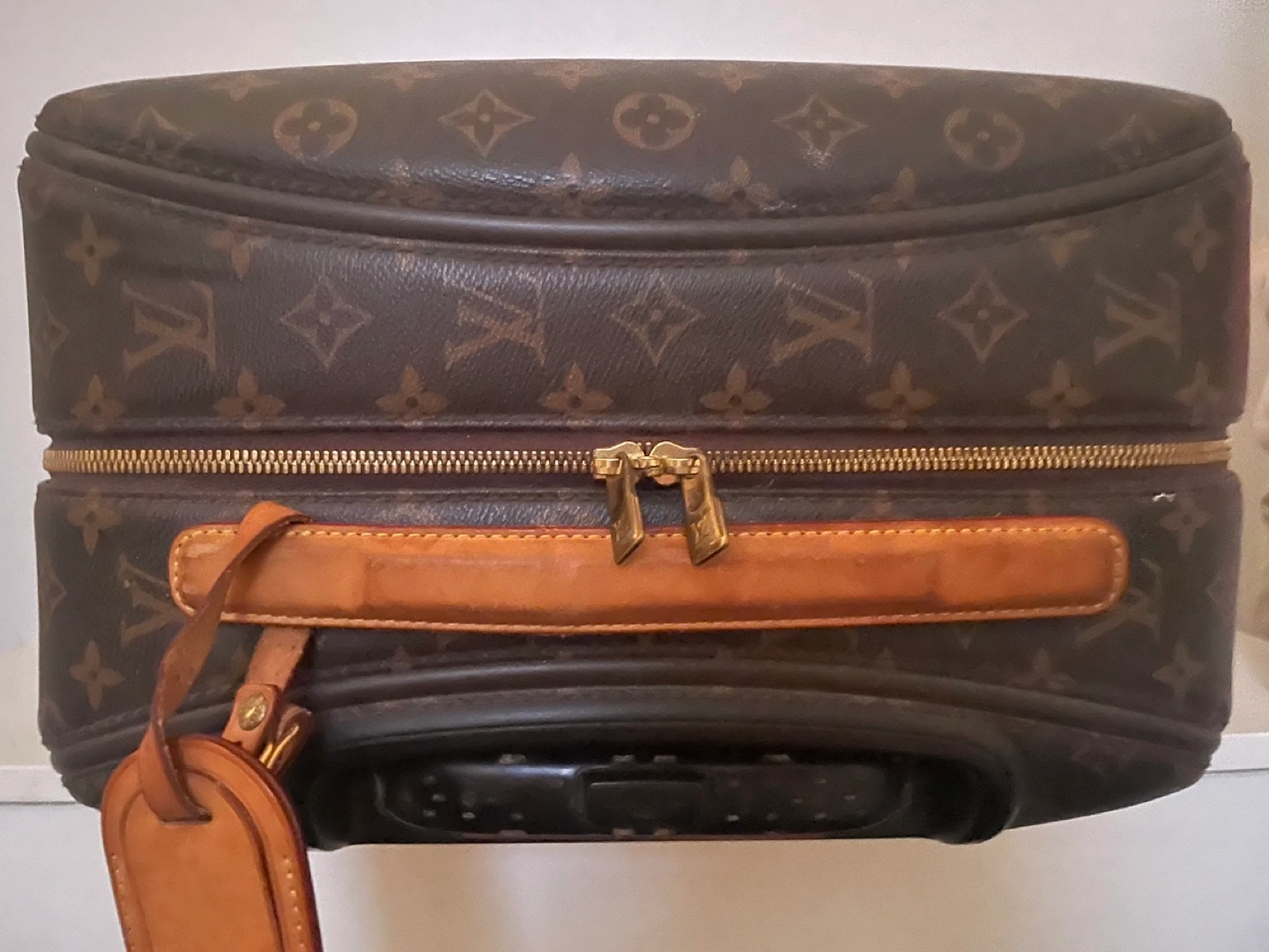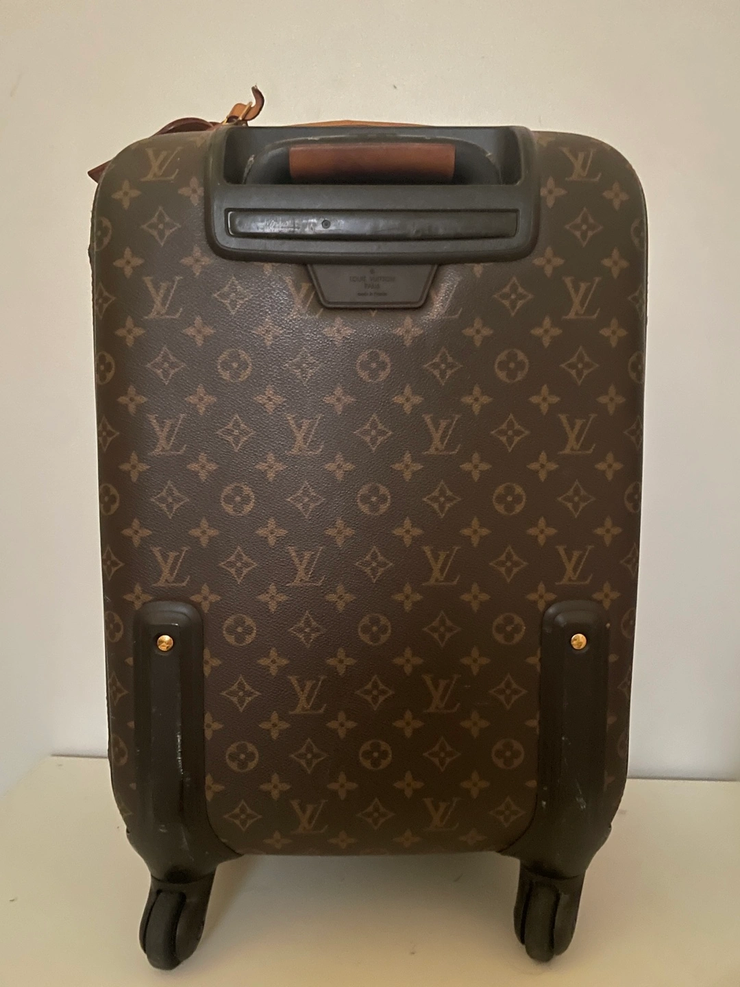 Pre-owned Louis Vuitton luggage. Good condition Monogram canvas. Features include 4 wheels, top leather handle which has some wear and retractable handle. Inside is in excellent condition and great on the outside.