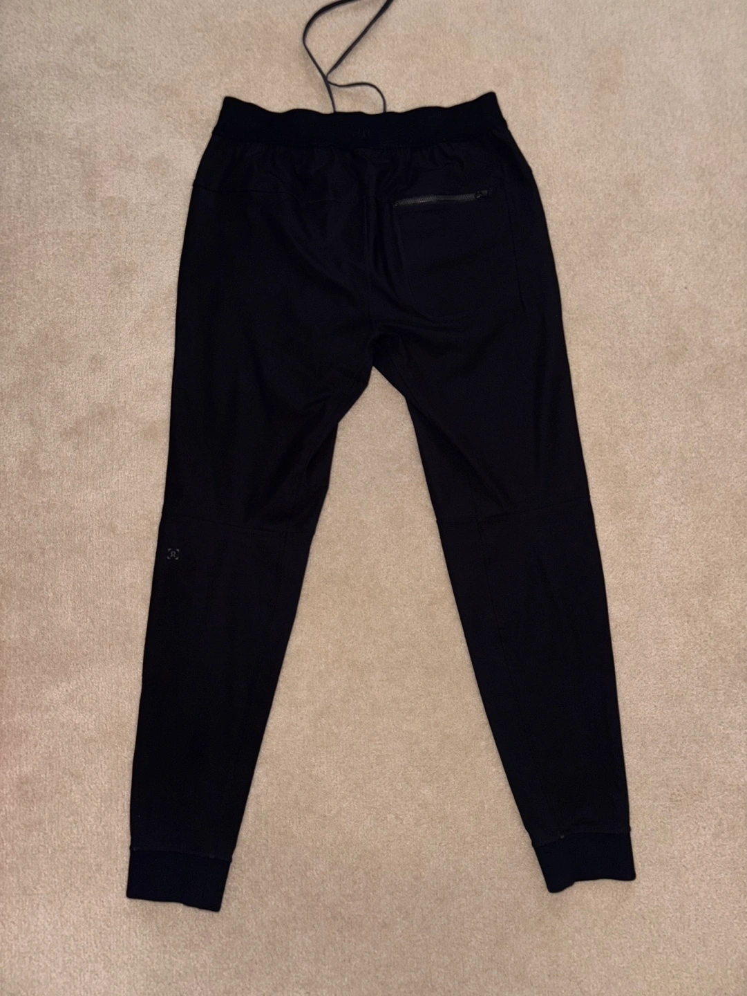 Men's black Lululemon ABC joggers. Size medium. Have a drawstring waist, zippered back pocket, and cuffed ankles.