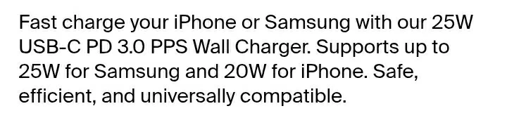 Optimized for Samsung 25W and iPhone 20W. USB-C.