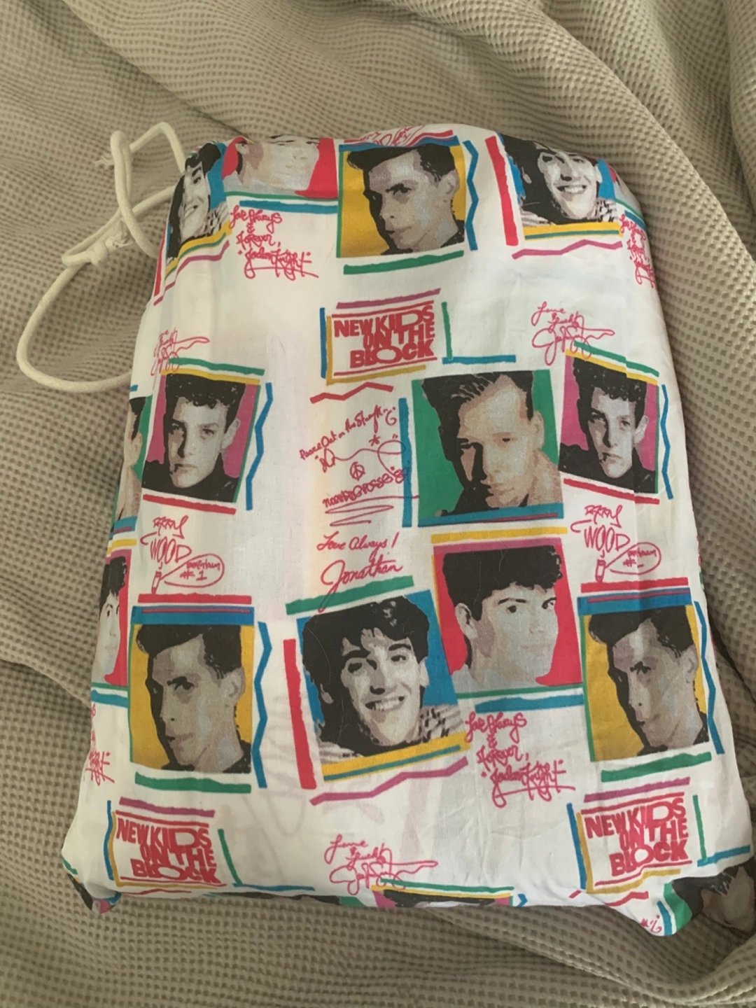 -New Kids on the Block sheet set in a drawstring bag