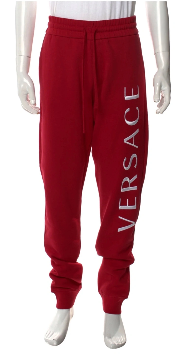Men's Versace joggers. Features a large white Versace logo down one leg. Drawstring waistband. Paid $560+