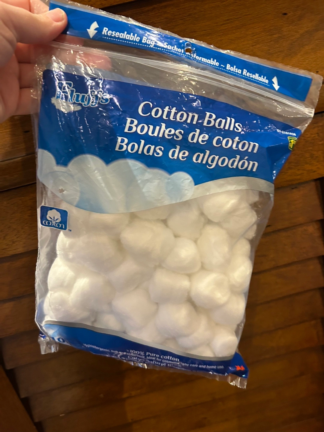 1000+Bag of cotton balls. 100% pure cotton. Hypoallergenic. Ideal for cosmetic, baby care and home use. Bought these and only used one.