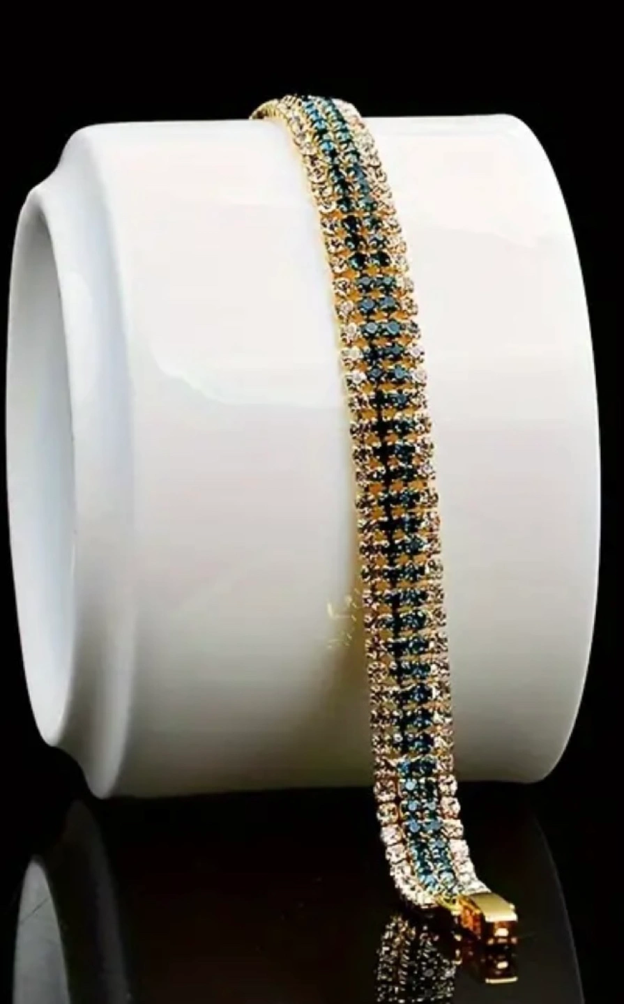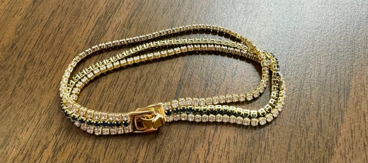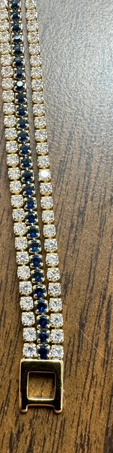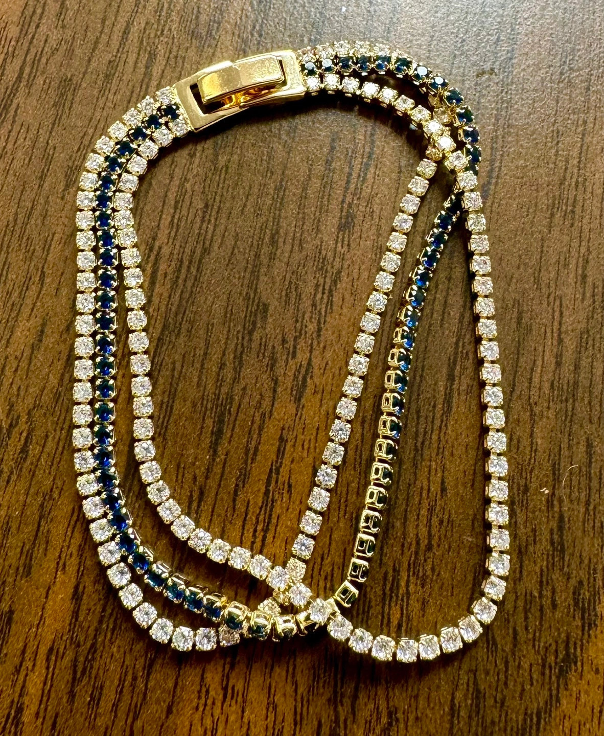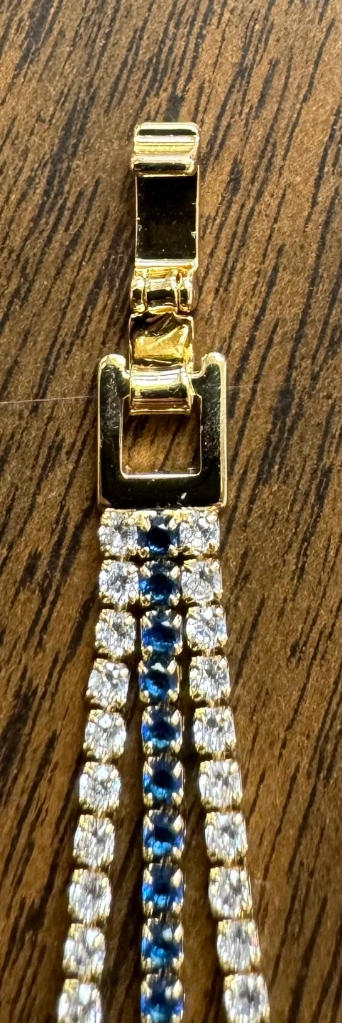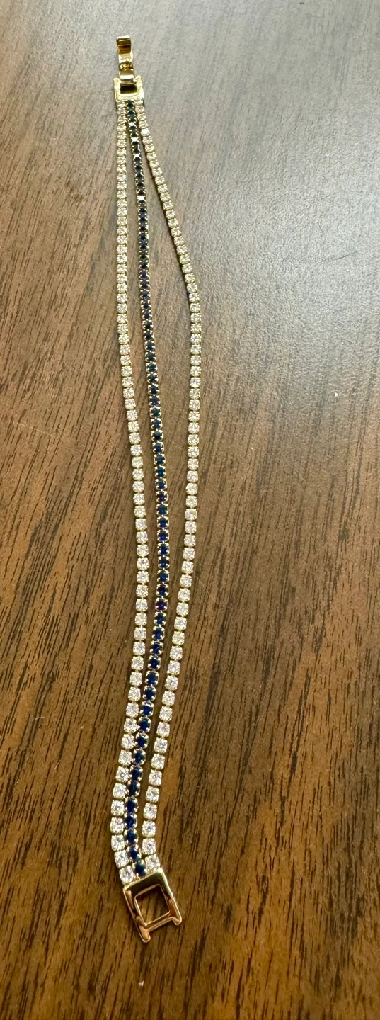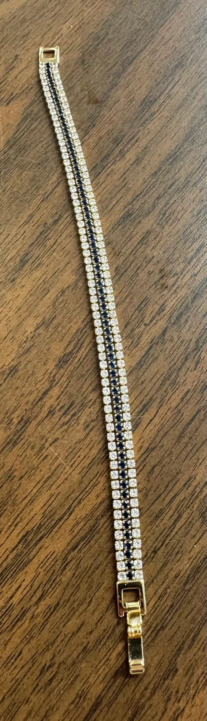 Gorgeous Gold Tone Tennis Bracelet with Blue and Clear Stones