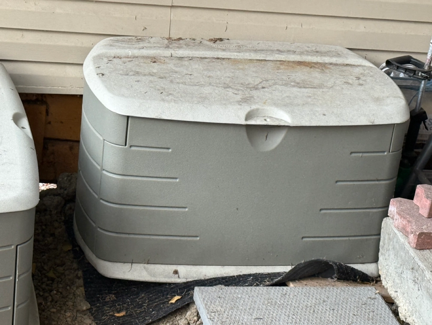 Durable outdoor storage container. Large capacity. 10 gallon Shows some wear from previous use. Great for storing garden tools or other outdoor items. 100$ each. Just need to be wiped down bought last season.