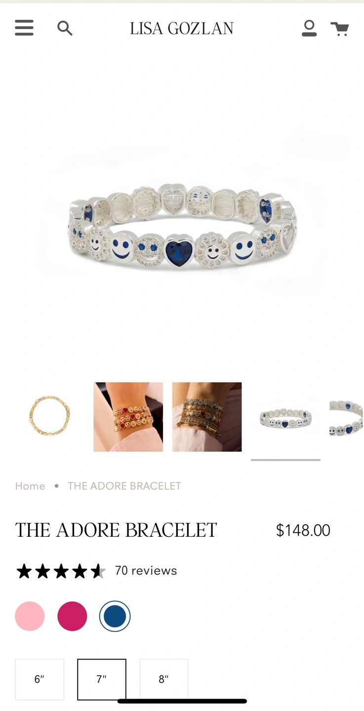 Selling my Lisa Gozlan The Adore Bracelet 7” in silver. Mint condition. Only worn once. I’m selling it because I have too many to wear all together and they do not do refunds, only exchanges at the store. This retails for $148 plus tax. I’m asking for $105. Savings of $63. Dust bag included :)