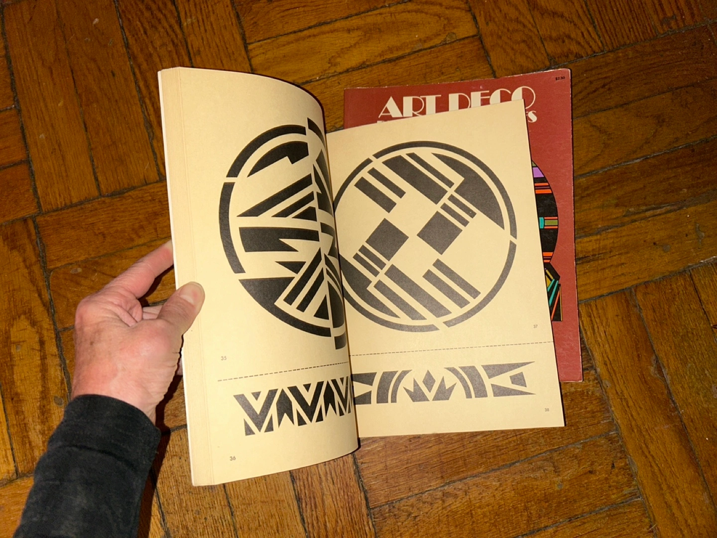Two art deco design books. One contains cut and use stencils. Another features Art Deco designs and motifs. Both books show various geometric patterns that could even be used like a coloring book. #freecycle