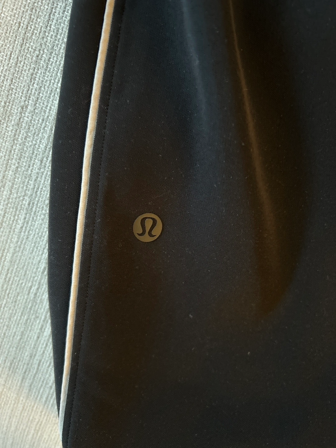 Lululemon Black Track Pants with White Side Stripes - Size 8