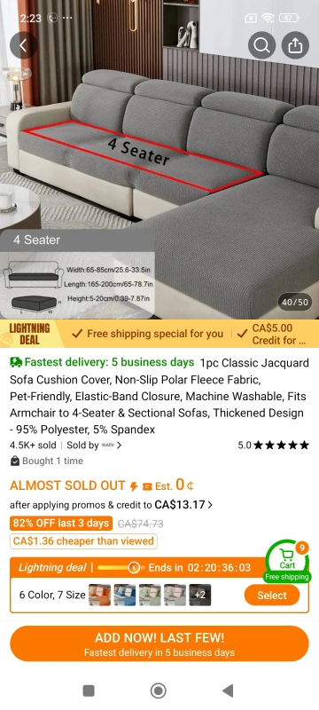 Elastic-band closure. Pet-friendly. Machine washable. Polar fleece fabric. 95% polyester, 5% spandex. Thickened design. Fits 4-seater, Dark Gray colour, 100% New