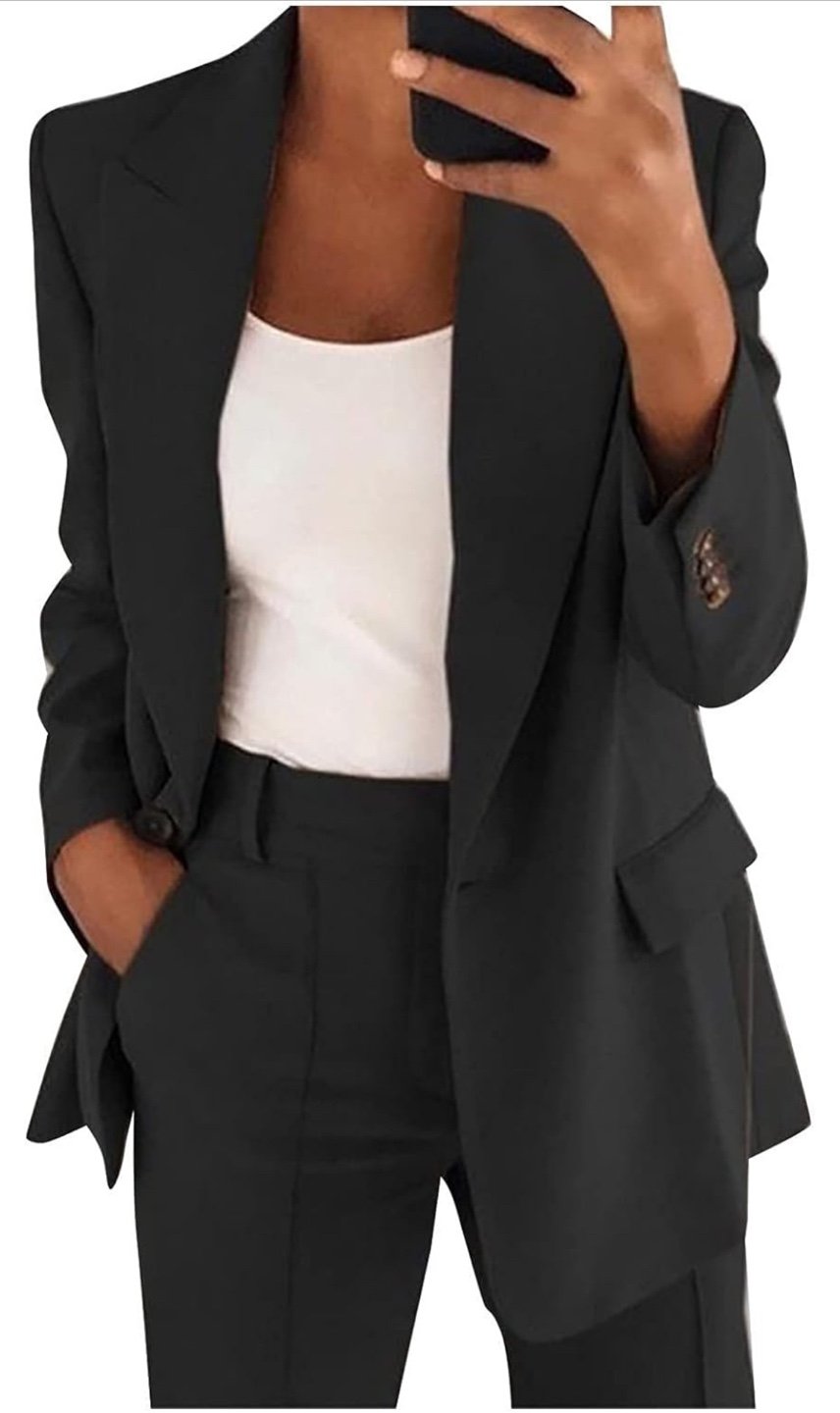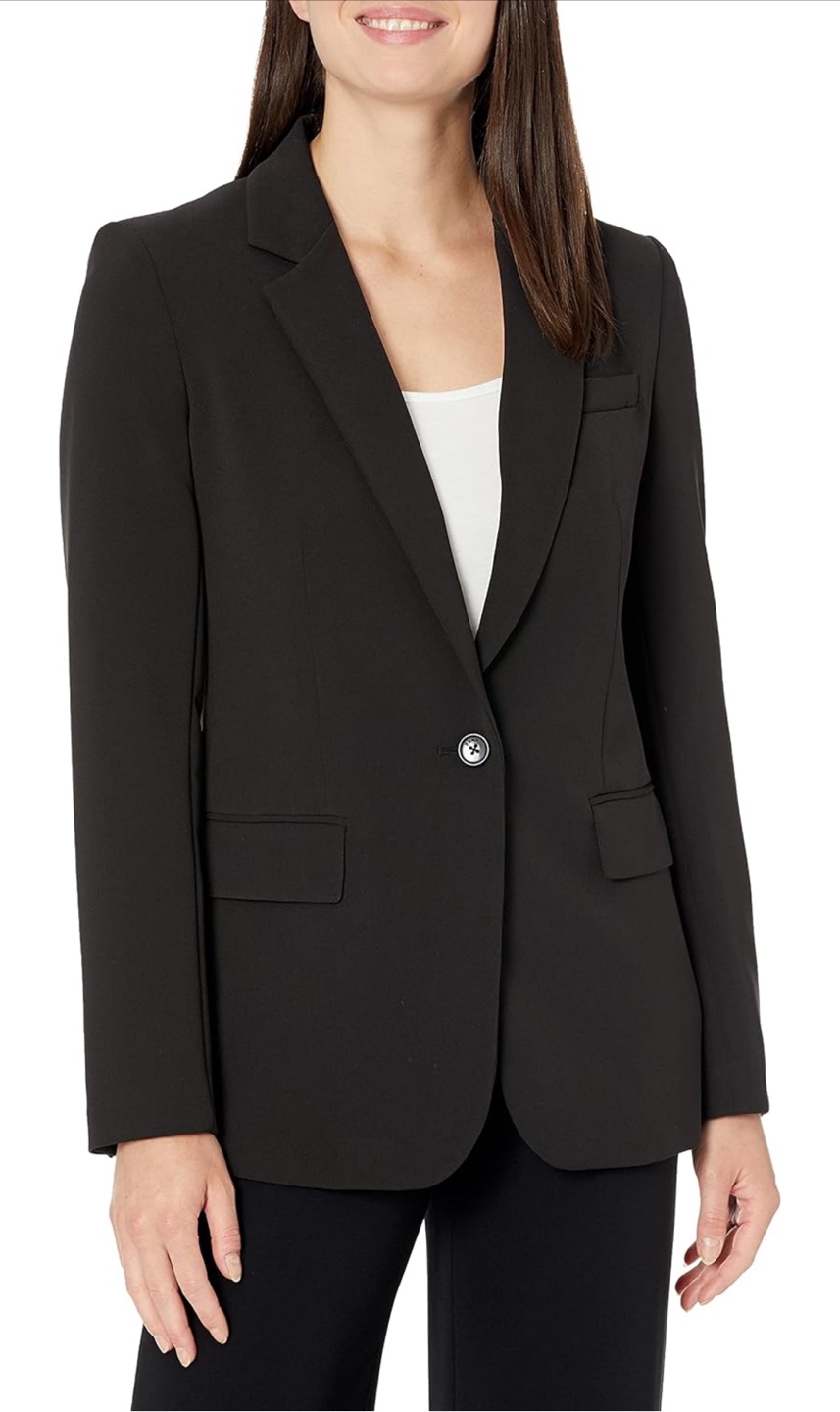 Classic black blazer. Single button closure. Long sleeves. Pockets. Suitable for work or casual wear. New