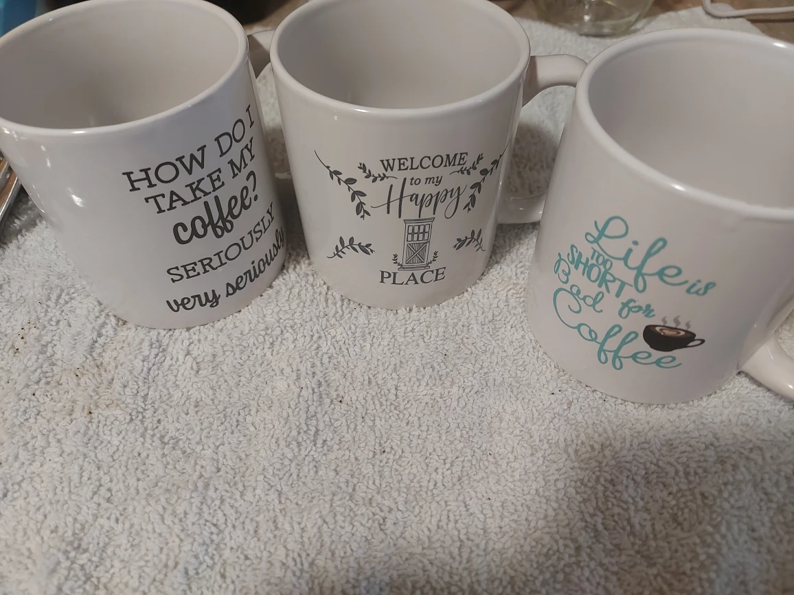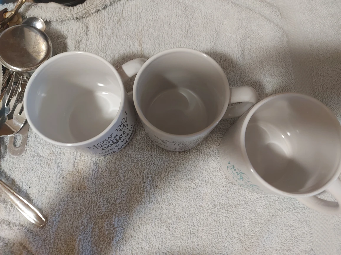 3 mugs with sayings. All excellent Used Condition. Washed and sanitized.