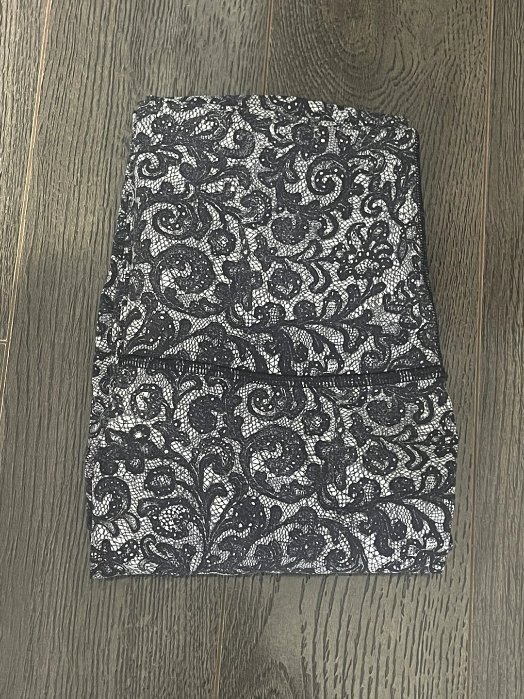 Lululemon Women's leggings. Black and white lace pattern. High waisted. Fold over waistband.