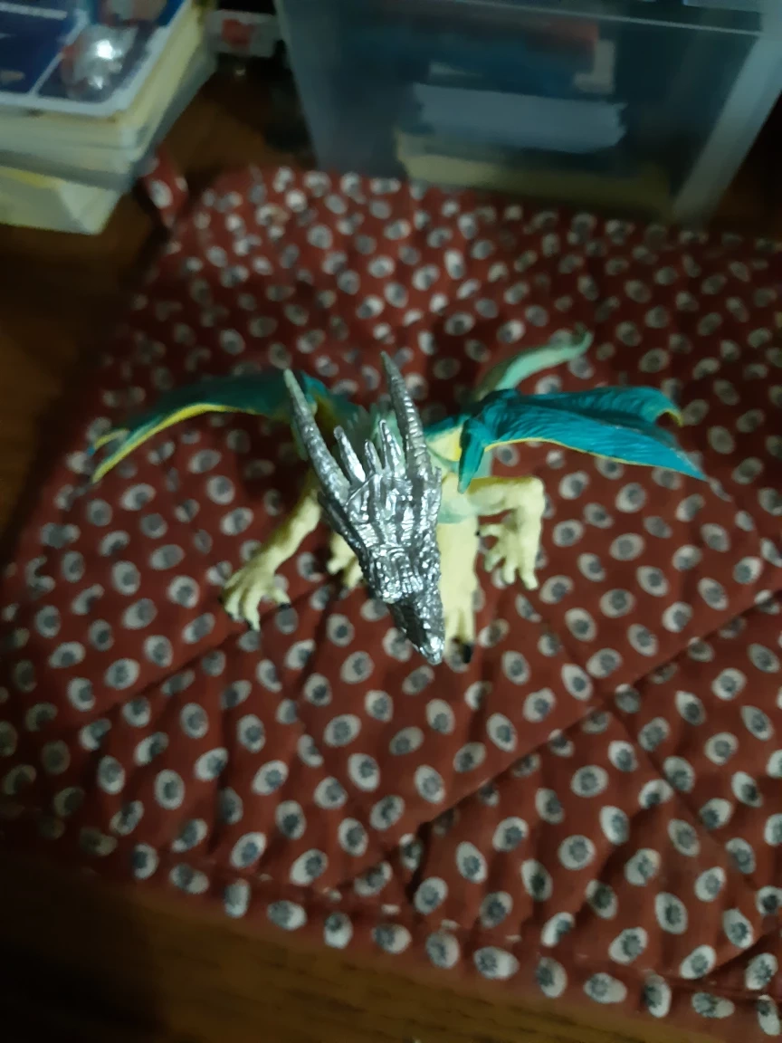 Detailed dragon collectible. Teal and silver colouring. Posable wings and head. Great for collectors or imaginative play.