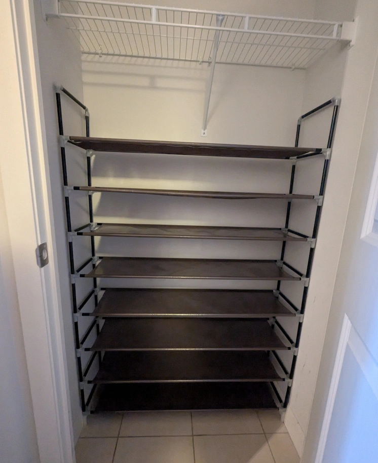 Buy & SellShoe RackShoe Rack$15Brown shoe rack. Eight shelves, metal frame. Great for closets. Dimensions27.5cm x 98cm x 144cmWHERE TO MEETCheck LocationView MapSELLERKayNewtonbrook E15411 reviews7 chats·0 favorites·118 viewsSEND CHAT TO SELLERHi Kay! I’m interested in your listing.Hi Kay! I’m interested in your listing.Get the Karrot app to chatSign In to chat
