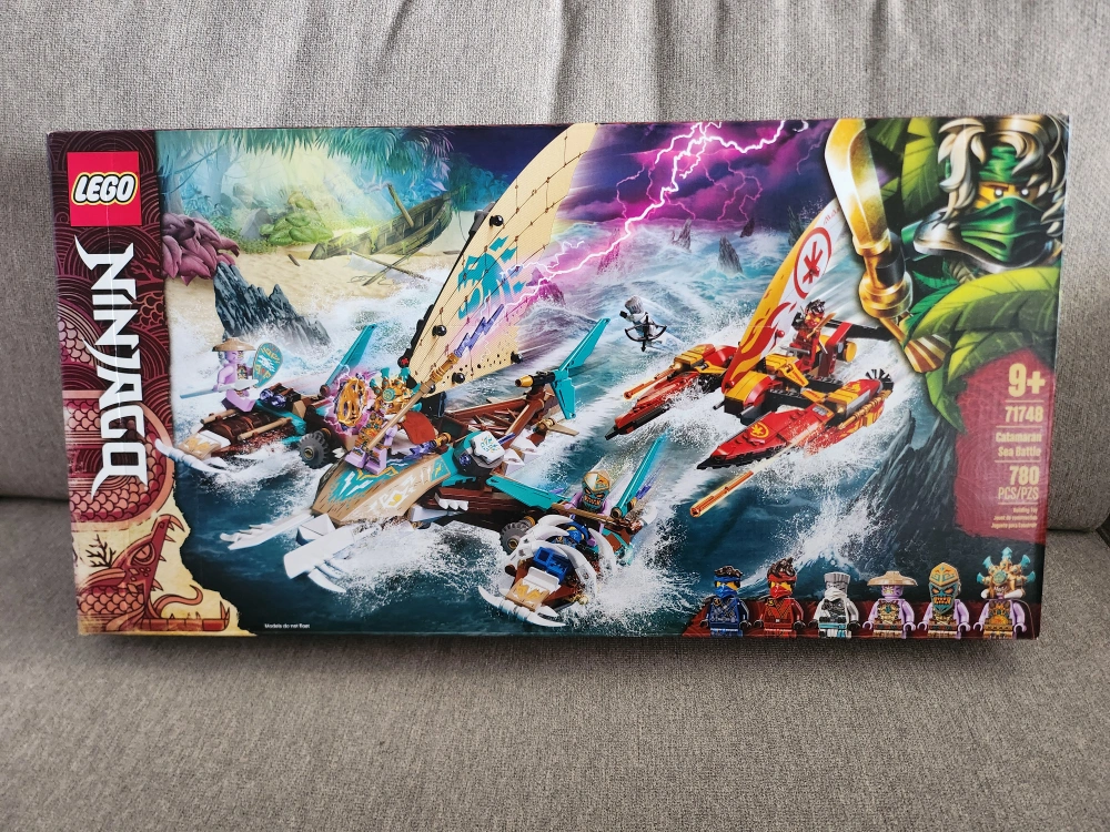 - New, LEGO NINJAGO set. 700+ pieces. Ages 9+. Catamaran battle scene. Multiple minifigures included.