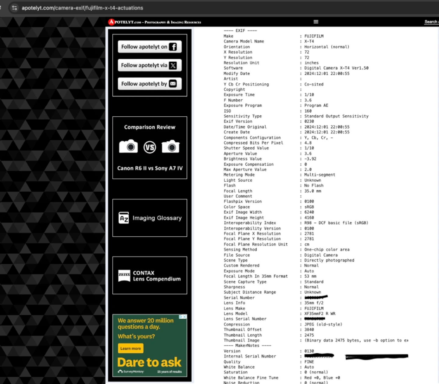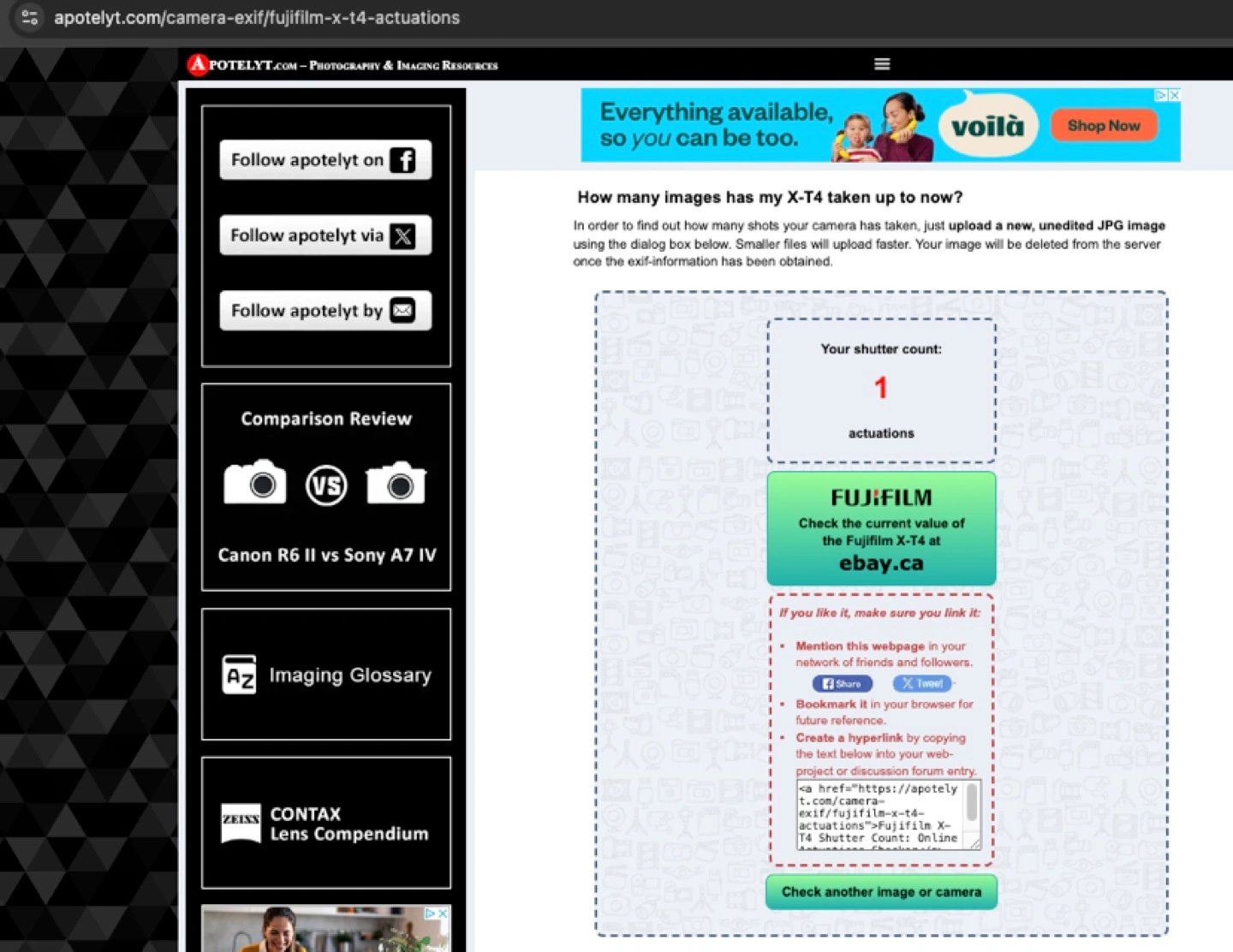 Only One picture taken to verify the shuttter count on Apotelyt.com.
