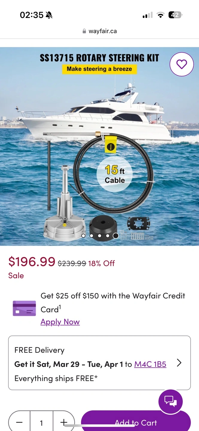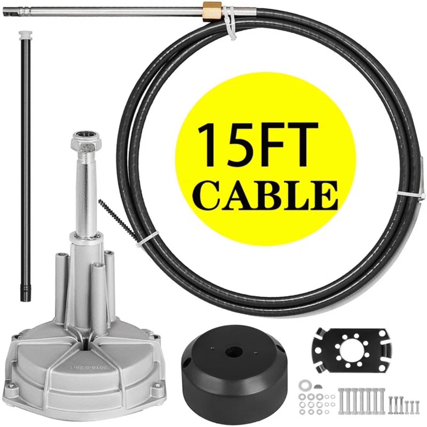 Complete boat steering system. Includes rotary helm, 15ft cable, mounting hardware. Aluminum alloy construction. Easy installation. Durable and long-lasting.
