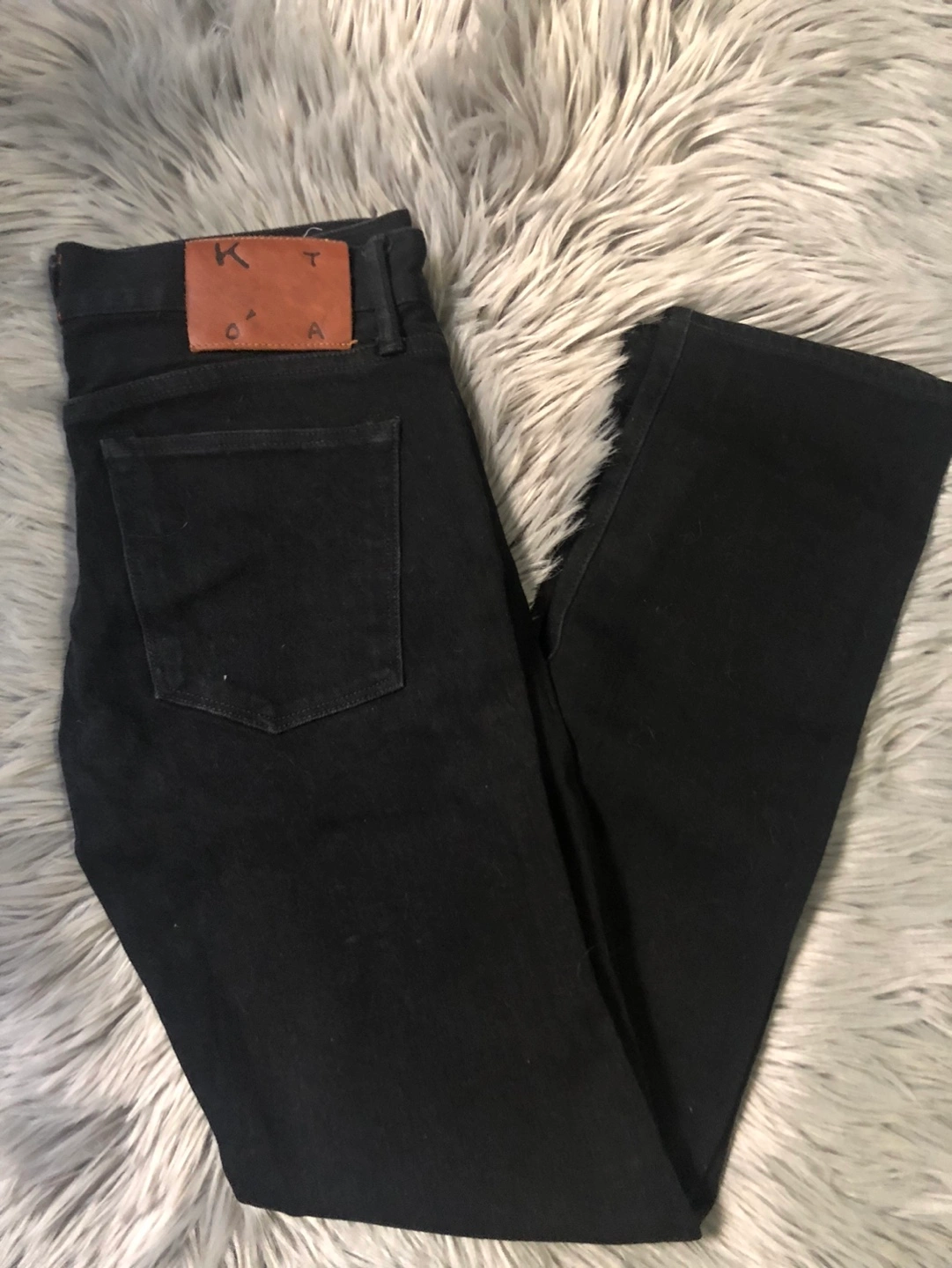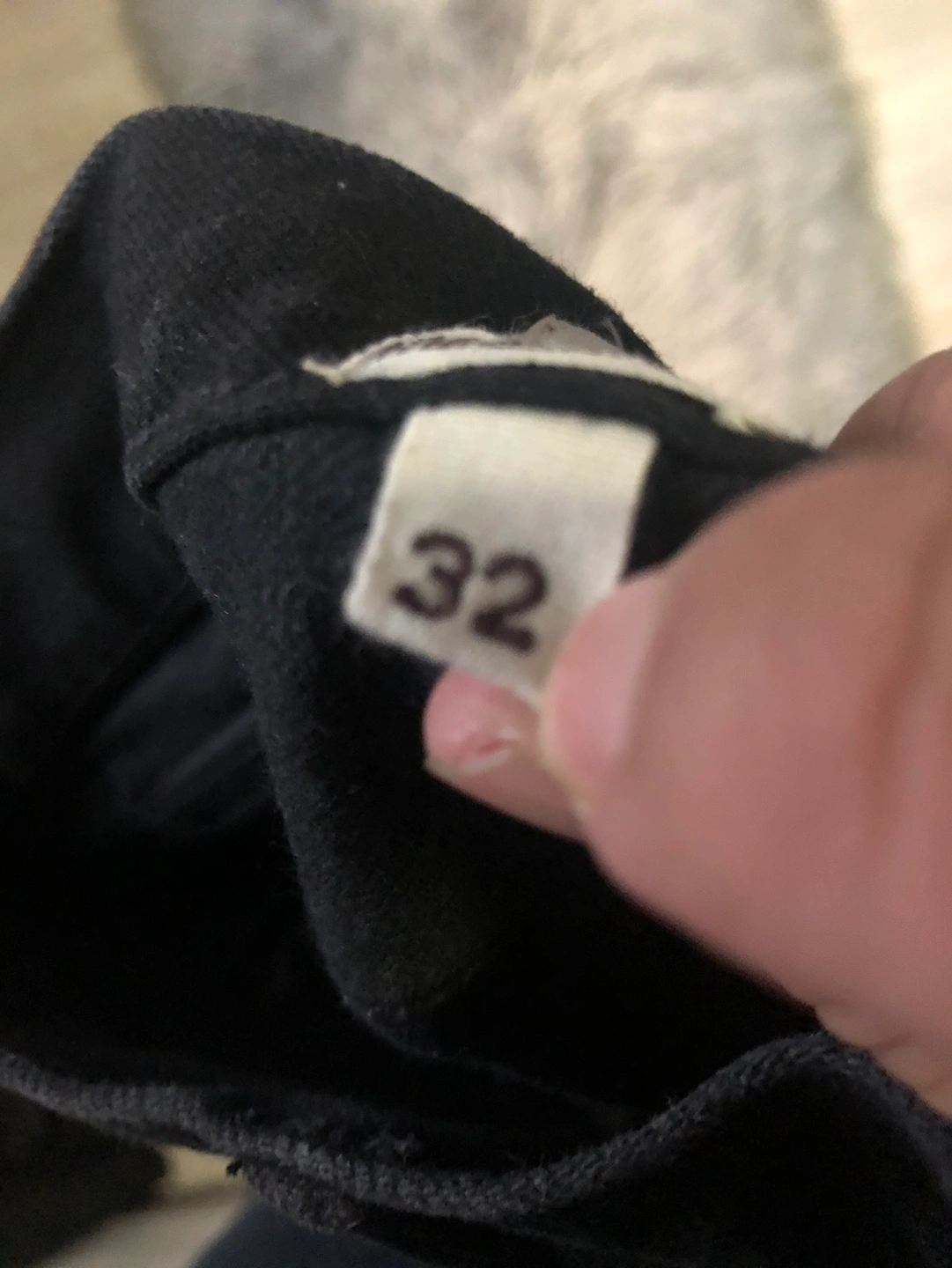 Men's black jeans. Size 32. 96% cotton, 4% polyurethane. Slim fit. Classic style. Must pick up
