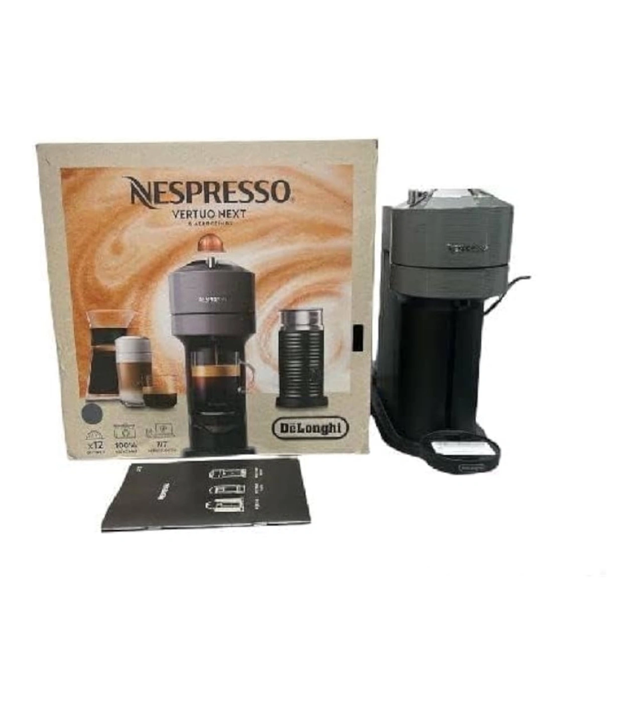 Nespresso Vertuo Next premium coffee and espresso machine. Includes Aeroccino milk frother. Makes various coffee and espresso sizes. Never used, comes with original box and instructions.