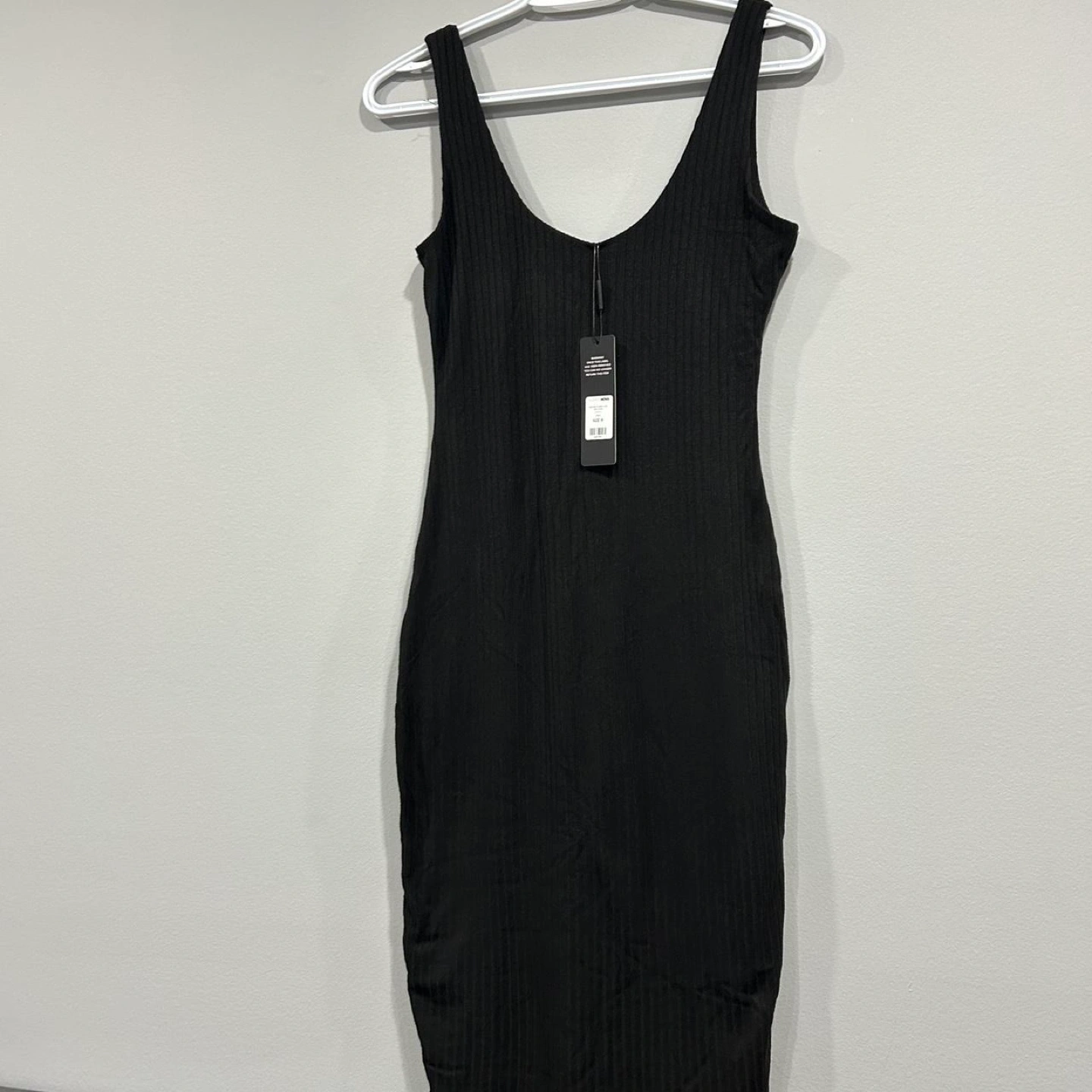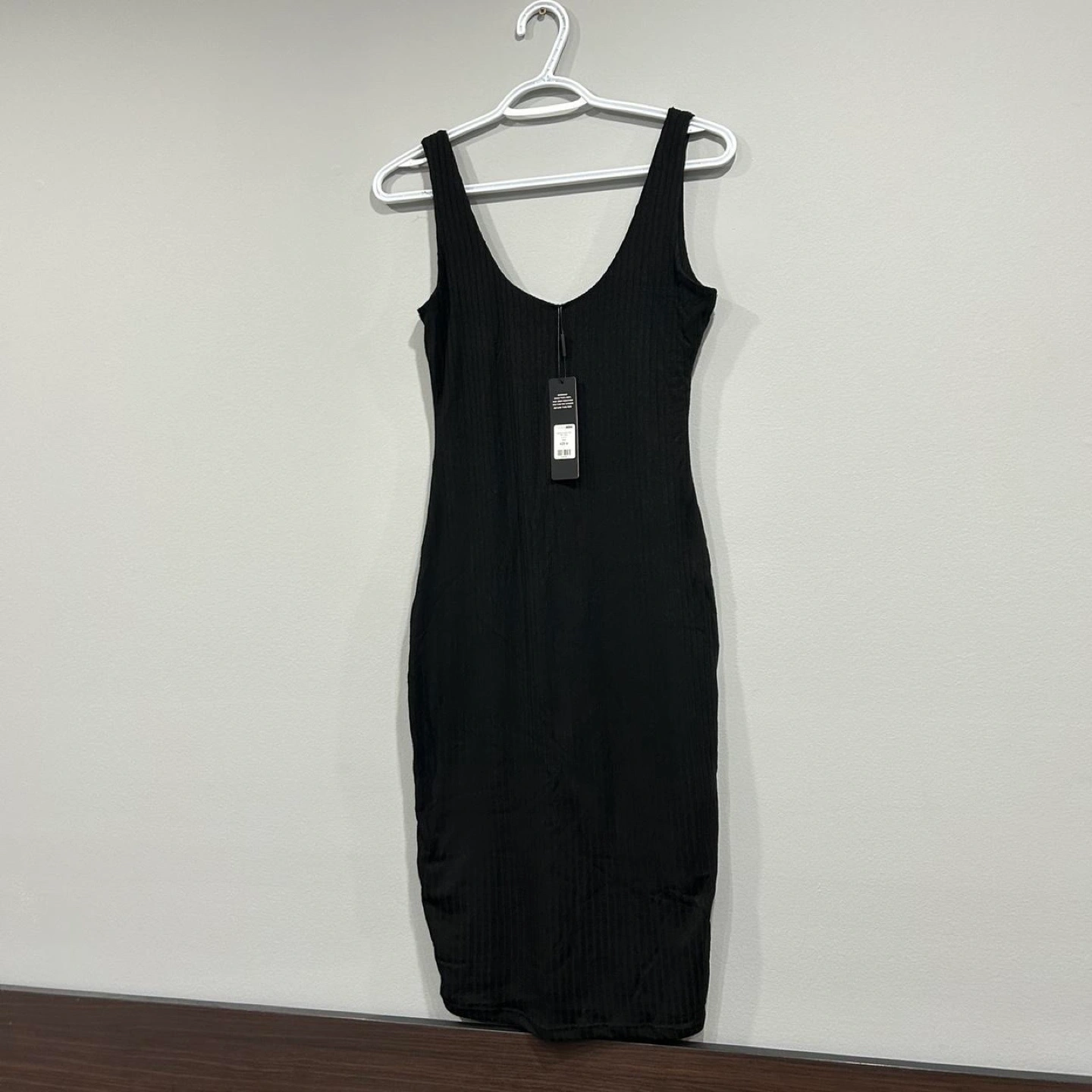 Ribbed double lined Midi Dress - sleeveless, low scoop neck, double lined, some stretch to it. 96% Polyester, 4% Spandex. New with tags, size medium.