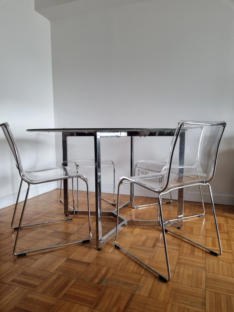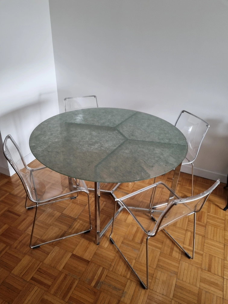 Set of a round dining table with 4 Clear Acrylic Chairs