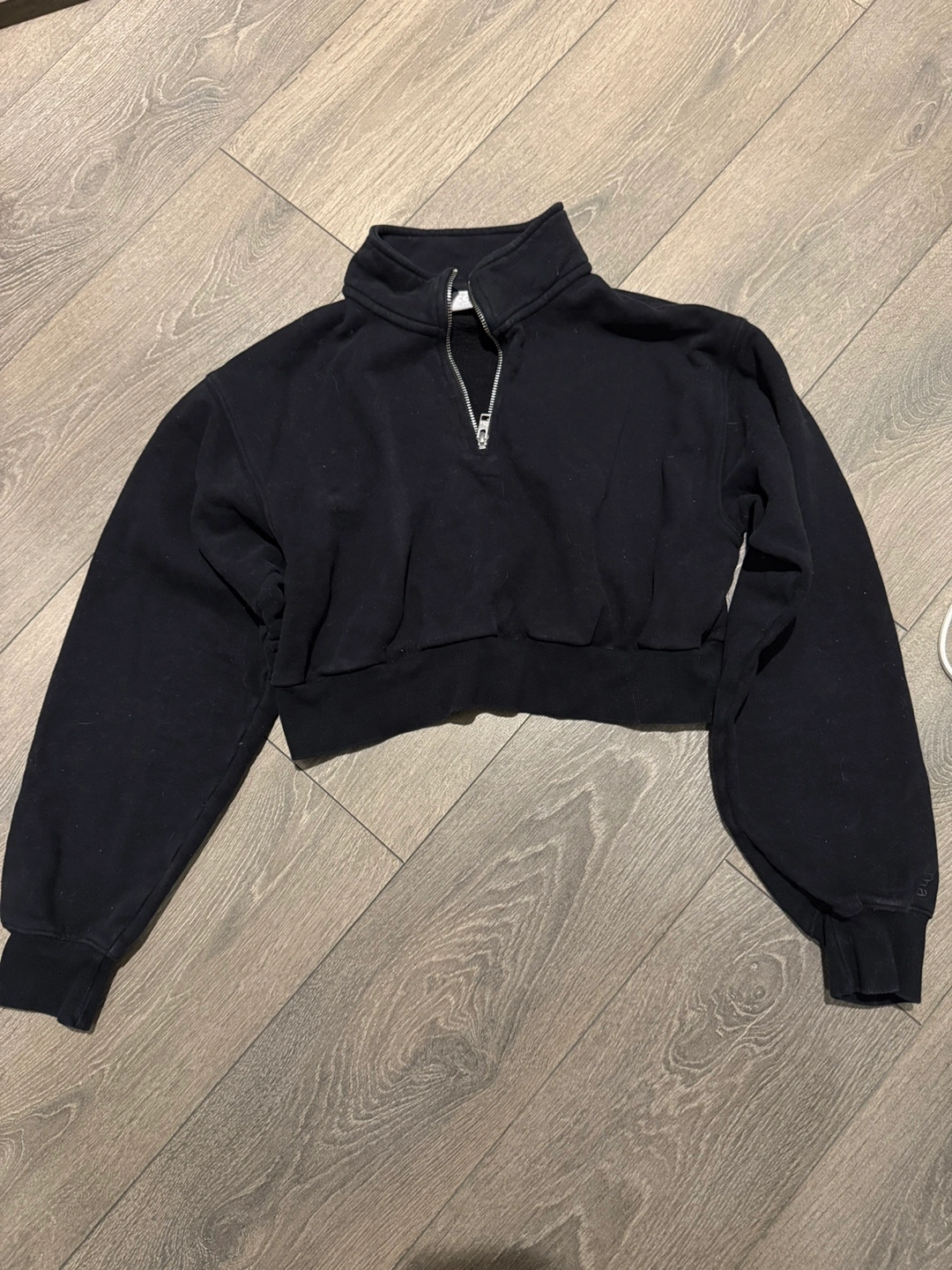 Black cropped zip up. Half zip. Long sleeves. great condition. Buy three items from my listings and get one under 10 for free! Multiple purchases come with decent discounts!