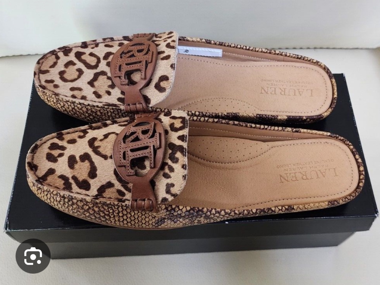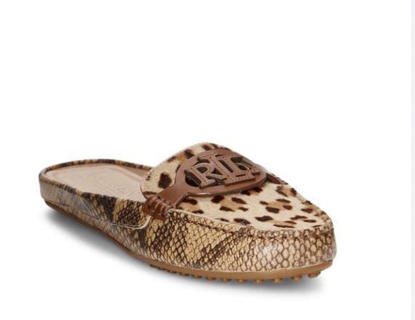 Step out in style with these new Lauren Ralph Lauren Women's Slip-on Mules! These stylish mules feature a unique animal print design and the iconic 'RL' logo, perfect for adding a touch of elegance to any outfit.