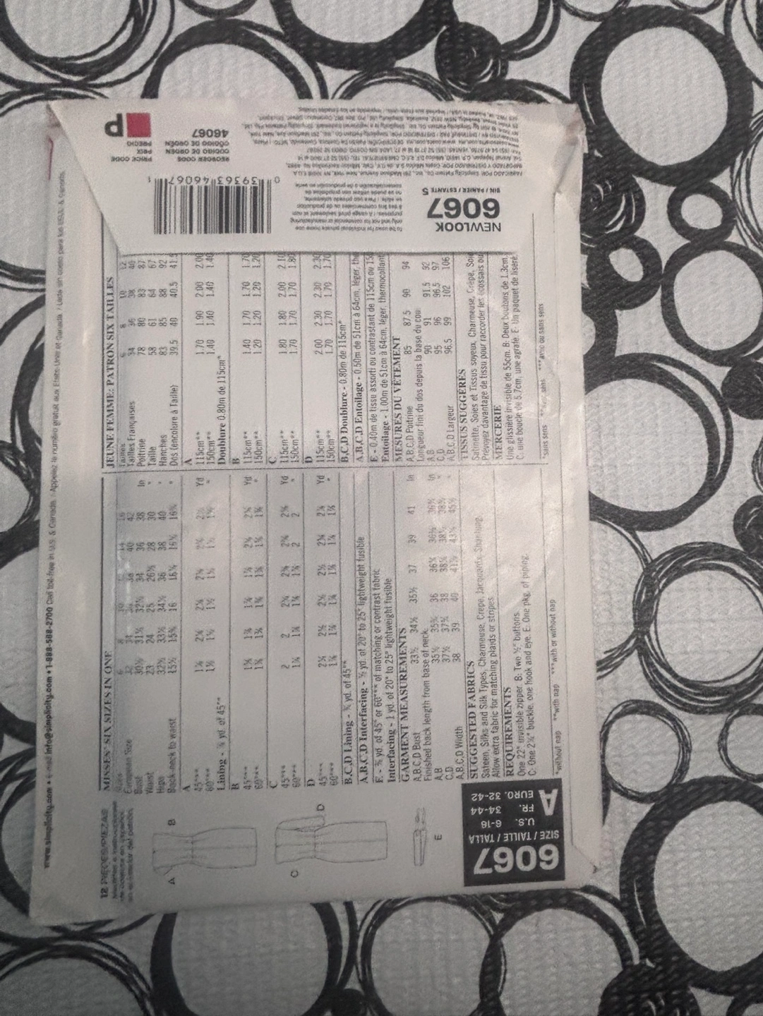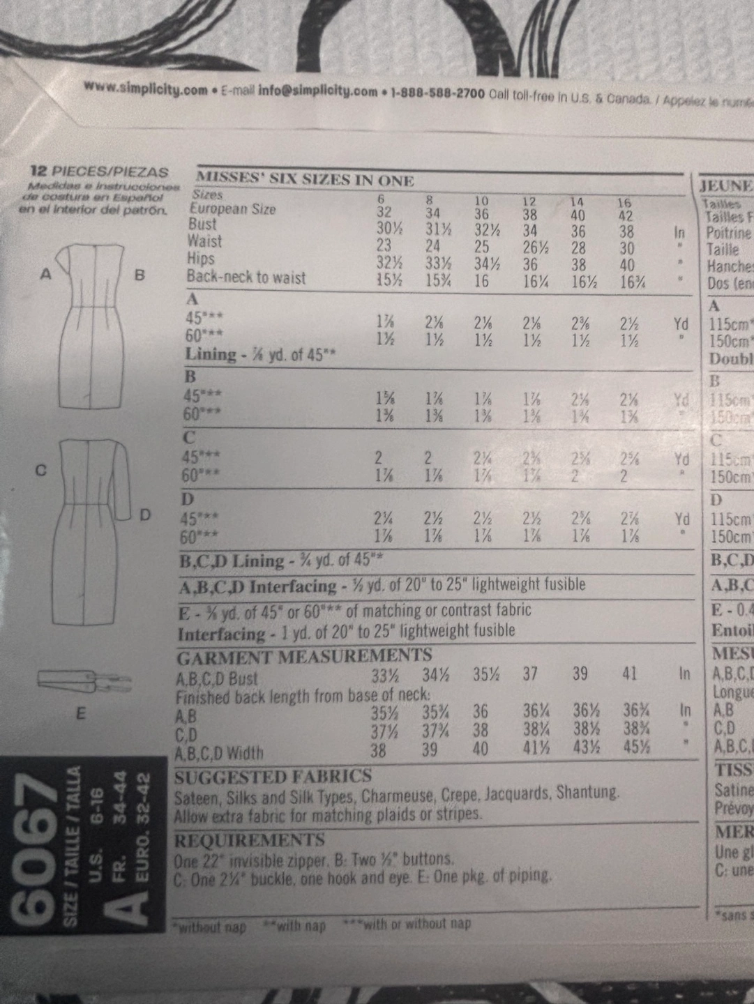 New Look sewing pattern number 6067. Six sizes in one. Includes instructions and pattern pieces. For misses' sizes 8-18.