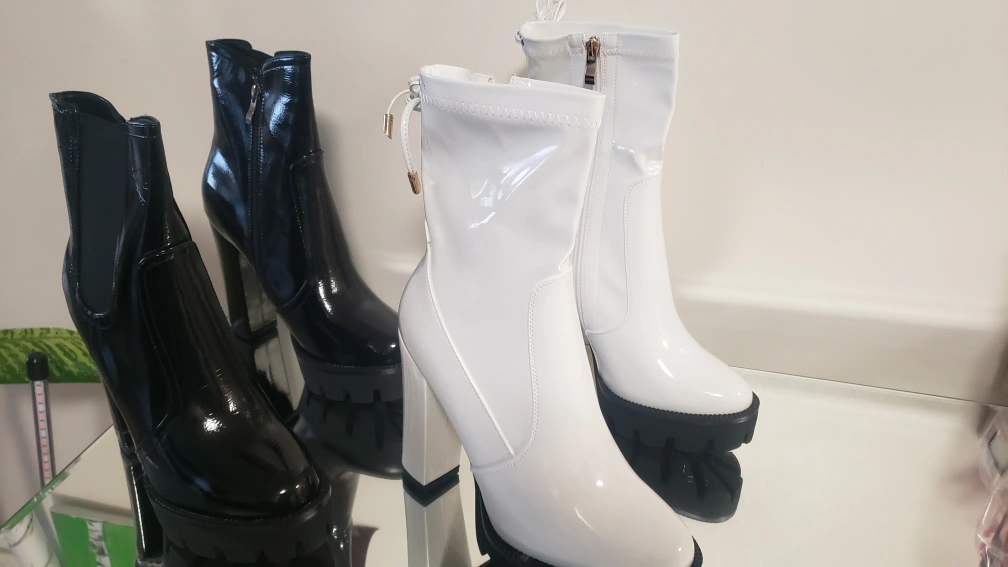 Brand new Women's High Heel Leather Boots White And Black