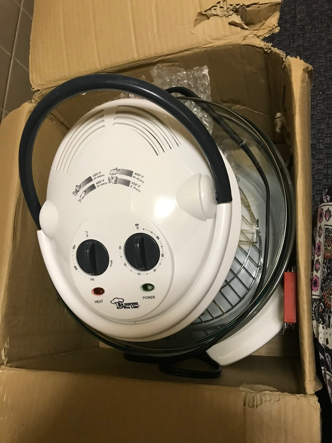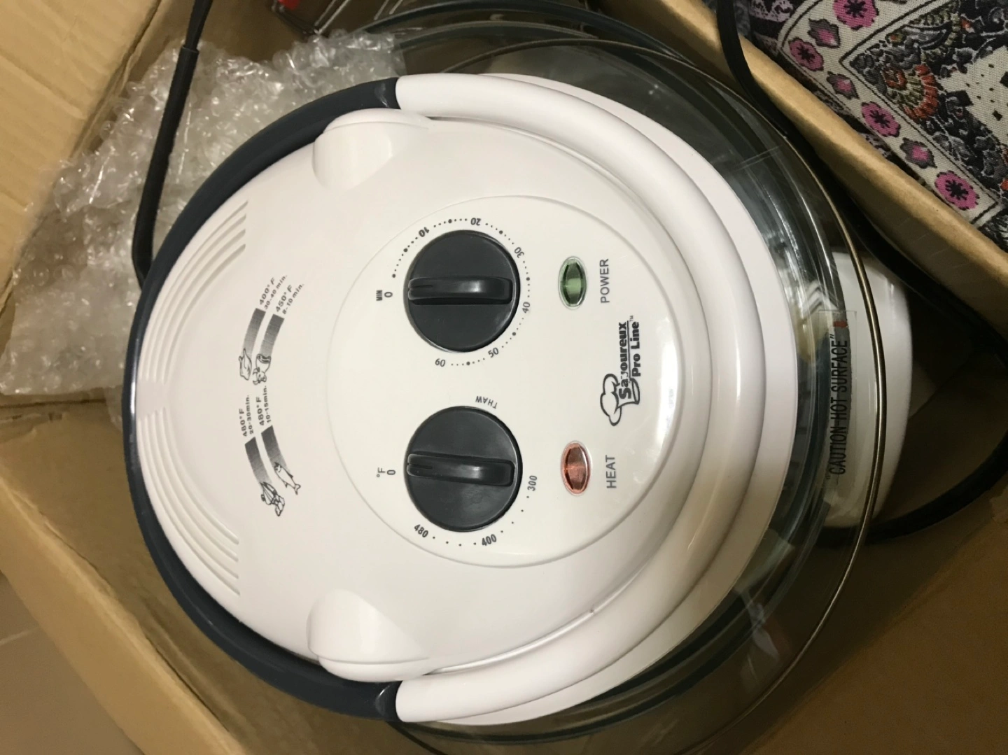Gourmex Pro Line rotisserie oven. Glass bowl and metal rack included. Easy to use controls. Great for roasting and cooking a variety of foods.