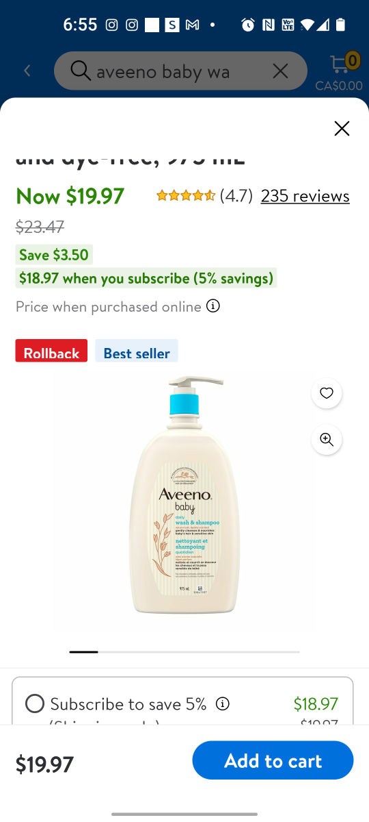1 / 21 / 2Buy & SellTwo Aveeno Baby Wash & Shampoo Bottles (575 mL each)Two Aveeno Baby Wash & Shampoo Bottles (575 mL each)$15Two bottles of Aveeno Baby Wash & Shampoo. Gentle on baby's skin. Large 975 mL bottles. New, unopened. $15 eachWHERE TO MEETBirchmount RoadView MapSELLERverifiedEstherBirchmount1024 reviews5 chats·0 favorites·52 viewsSEND CHAT TO SELLERHi Esther! I’m interested in your listing.Hi Esther! I’m interested in your listing.Get the Karrot app to chatSign In to chat