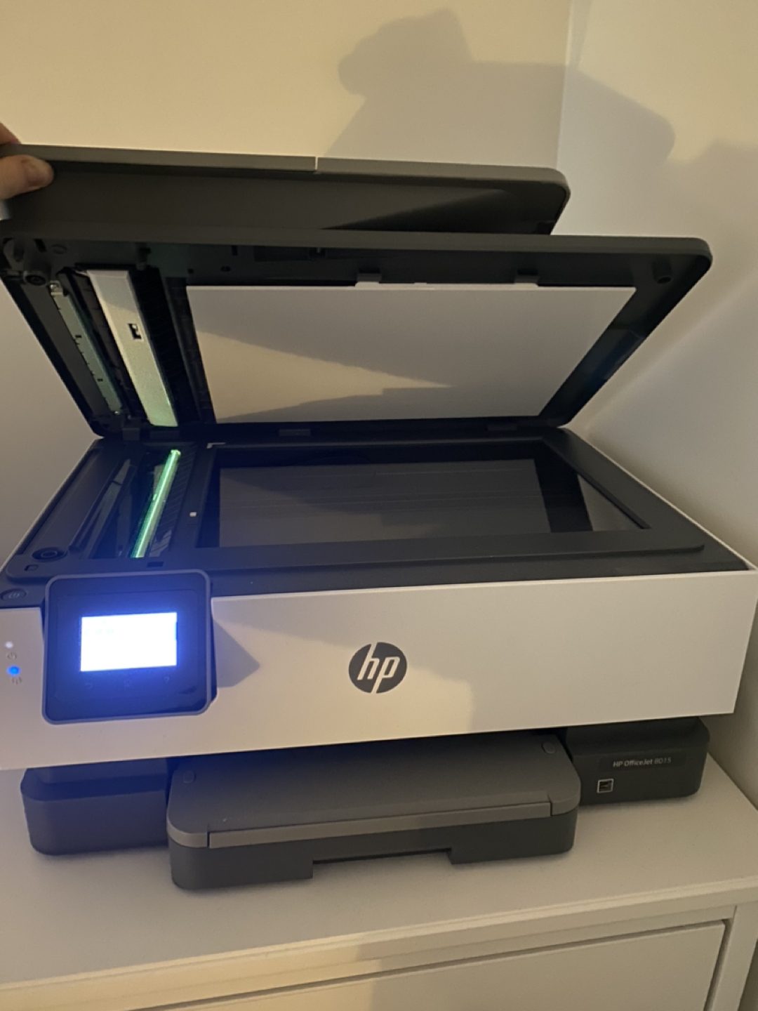 Wireless printer/scanner HP device. Been in use through 1 set of cartridges. No signs of use, perfectly functional