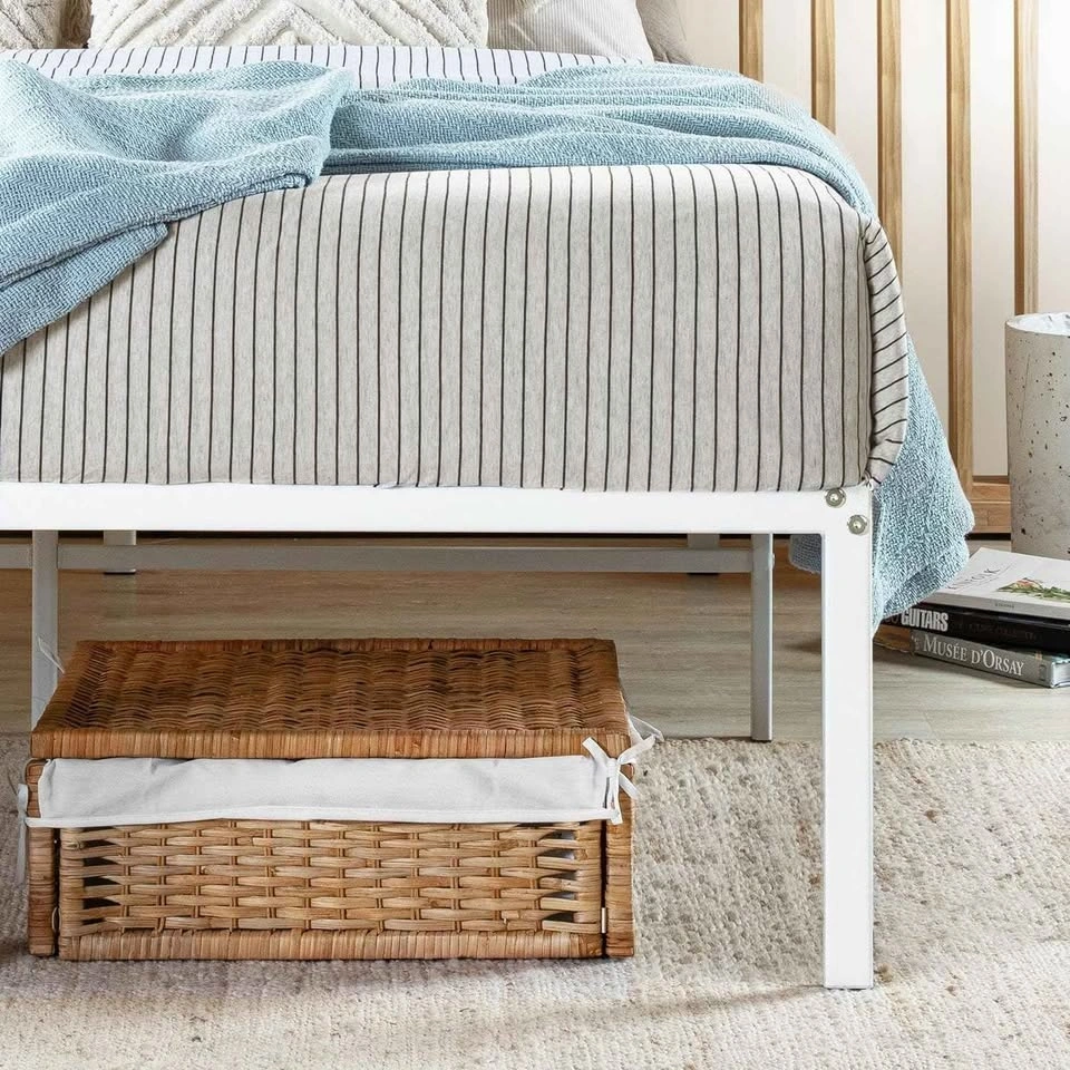 Mellow (Best Price Mattress) 18 Inch Metal Platform Bed Drame with Underbed Storage, Heavy Duty Steel Slats, No Box Spring Needed, Easy Assembly, White, Twin/Single