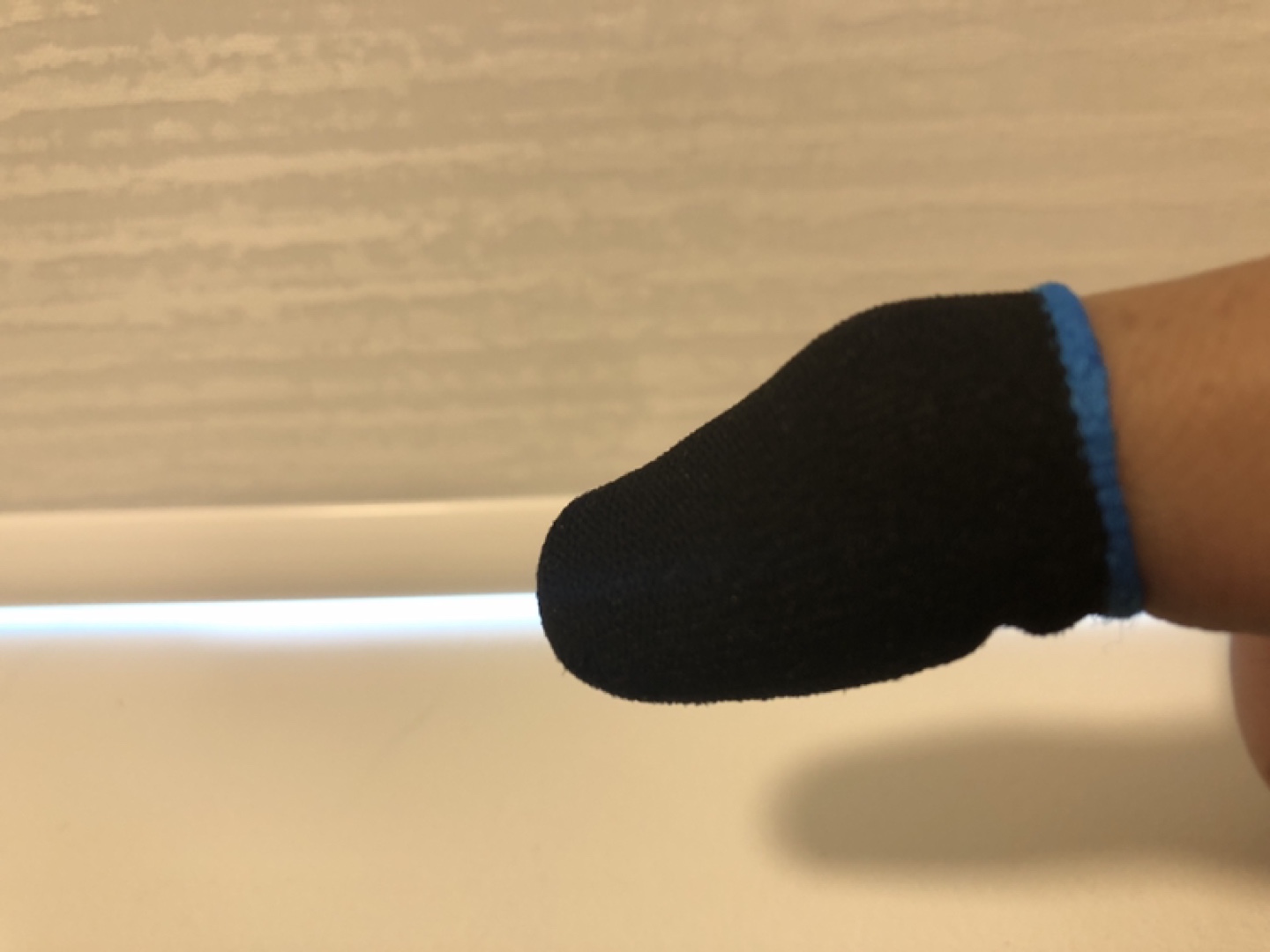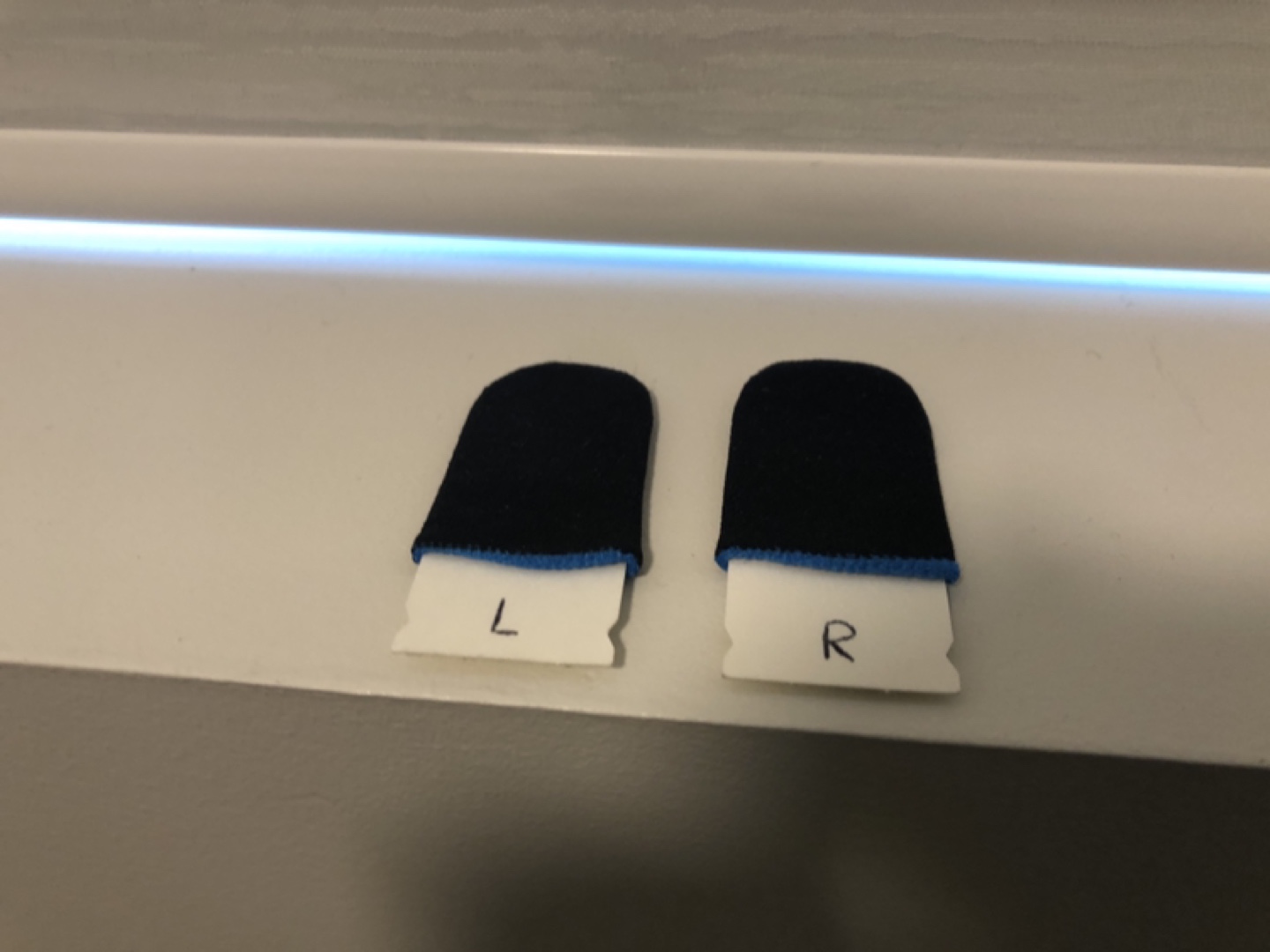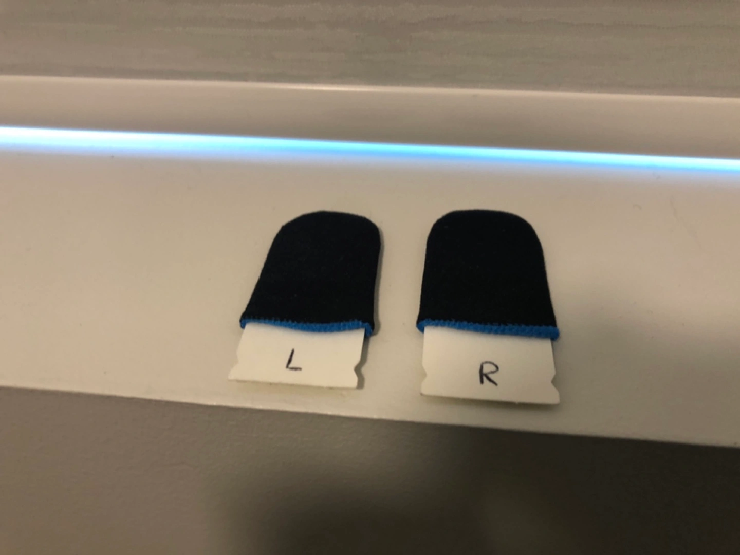 Pair of black finger sleeves for mobile gaming. Blue trim. Improved grip and sensitivity. Left and right marked. (open to offers)
