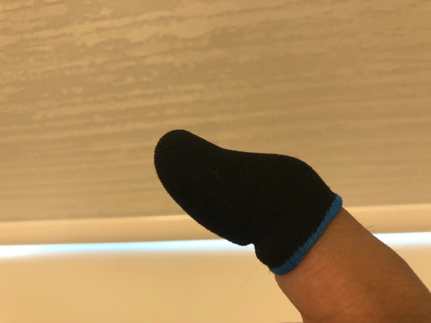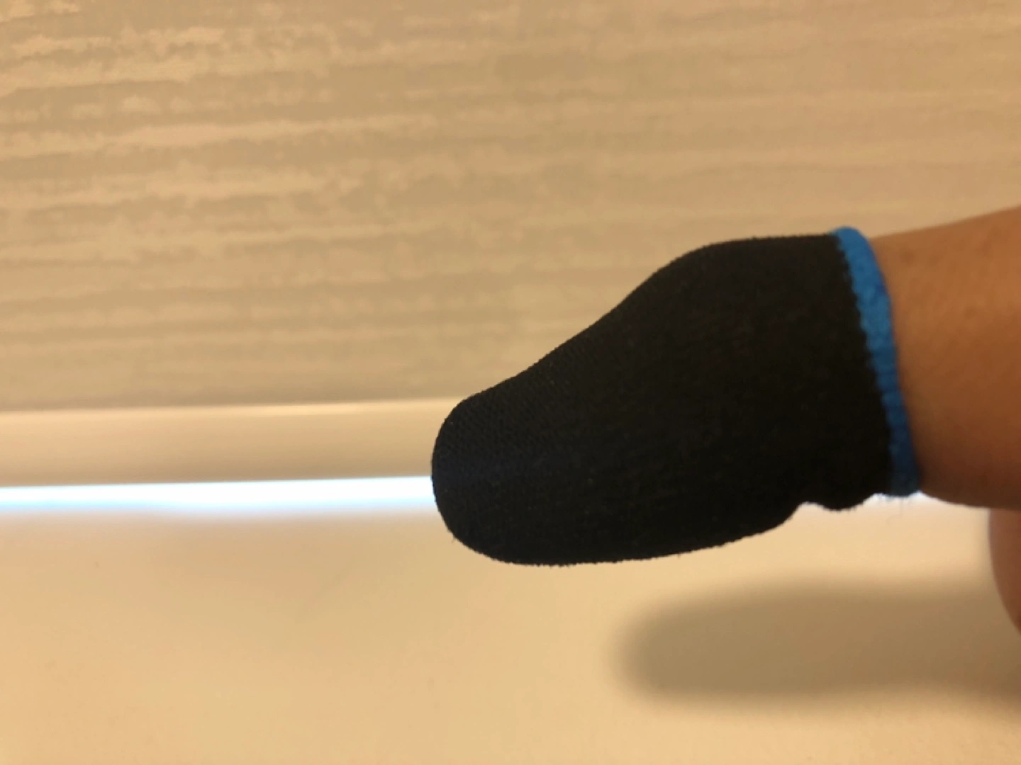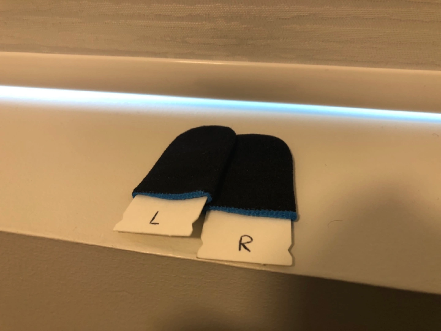 Pair of black finger sleeves for mobile gaming. Blue trim. Improved grip and sensitivity. Left and right marked. (open to offers)