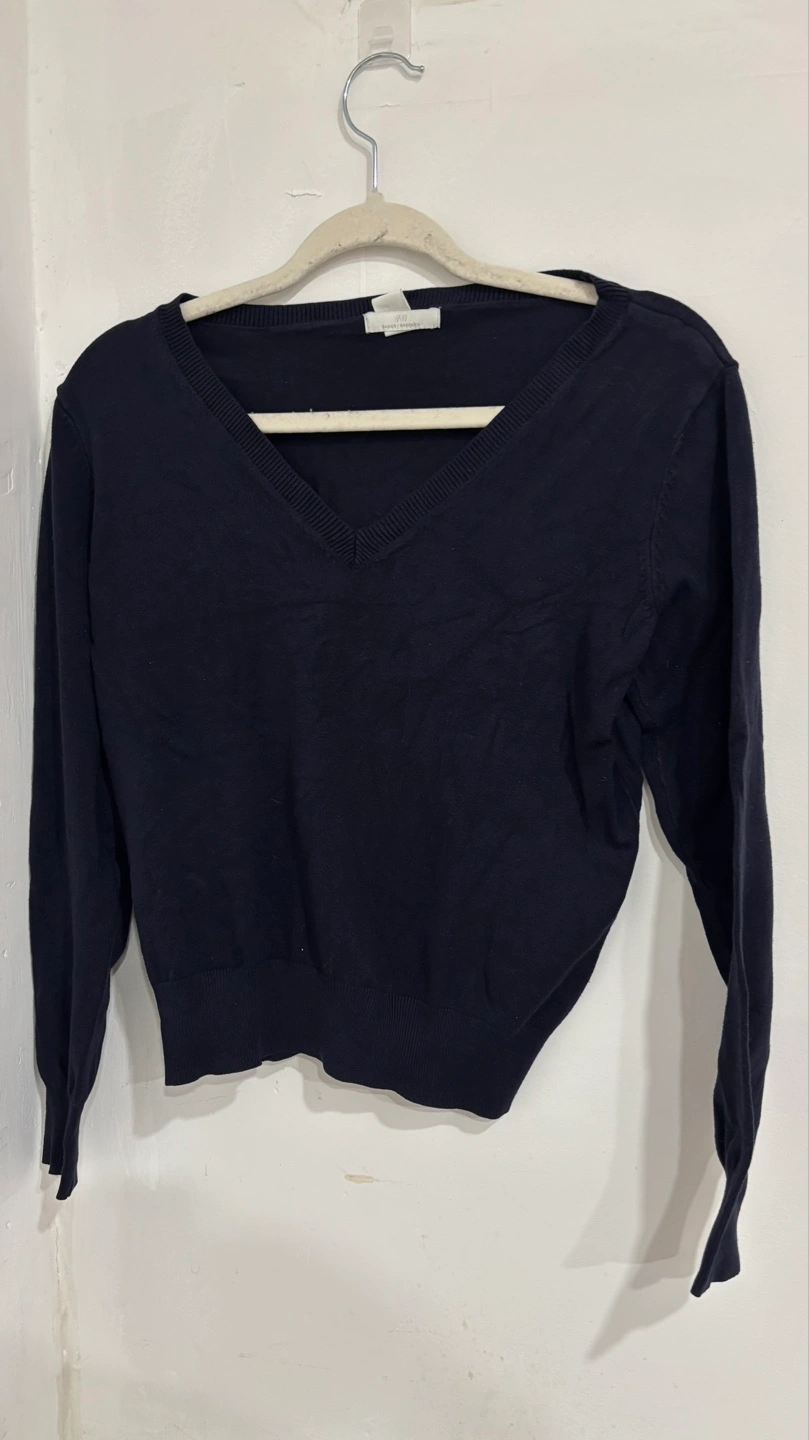 H&M Women's Dark Navy V-Neck Sweater