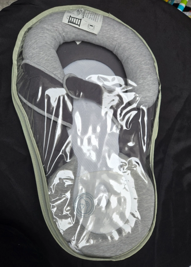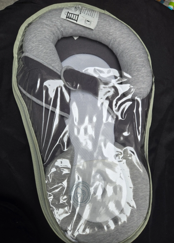 Brand new baby support pillow. Grey and dark grey colours. Soft and comfortable material. Includes a carrying case. Perfect for newborns. Barely used