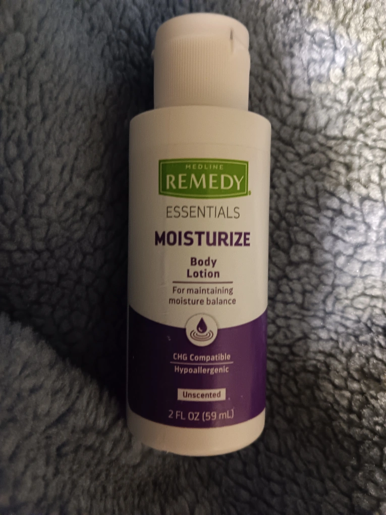 Small bottle of unscented body lotion. Hypoallergenic and CHG compatible. For maintaining moisture balance.๐ฅ