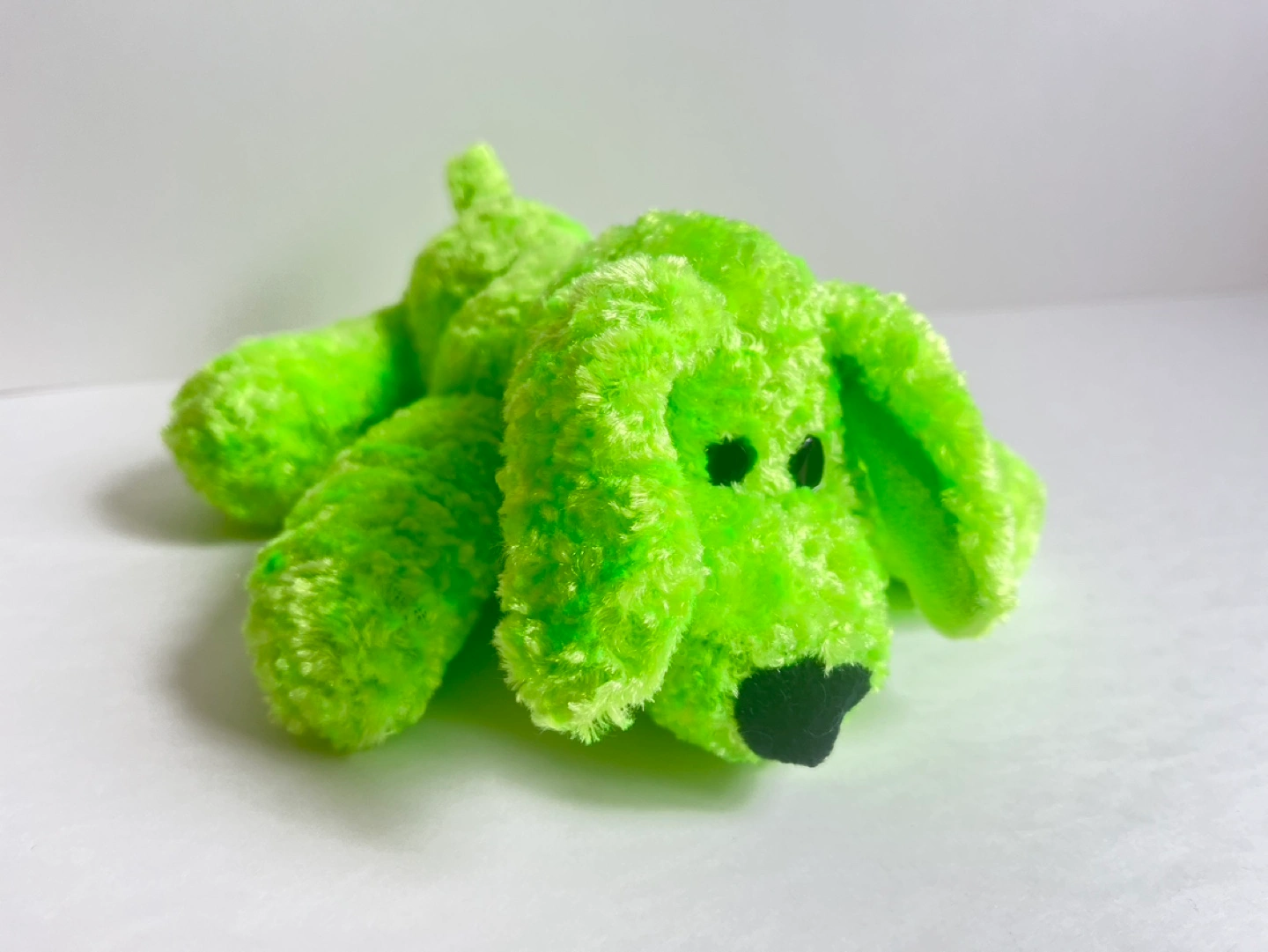 Adorable lime green plush puppy. 7” long. Soft and cuddly. New and never played with. Perfect for children or collectors.