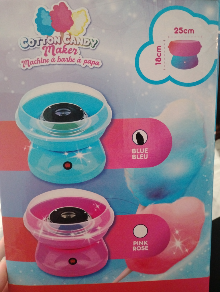 Never used. Brand new cotton candy maker. Includes machine, sugar spoon, cones, and instructions. Easy to clean and use. Perfect for families and any occasion.