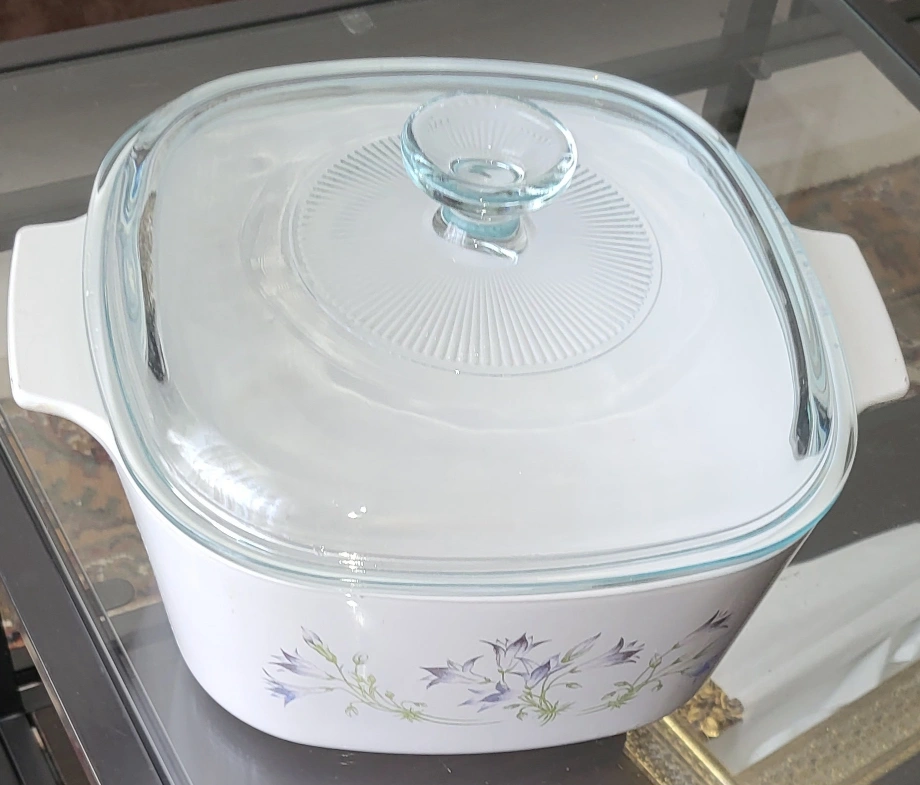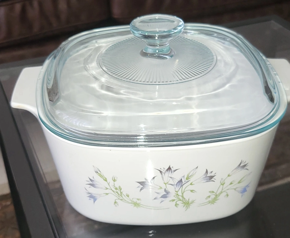Vintage Pyrex Casserole Dish with Lid - Bluebell Pattern