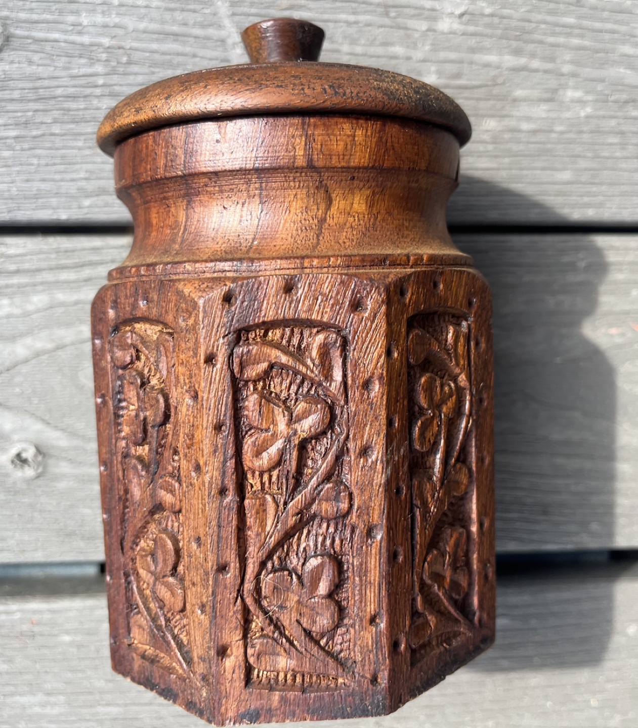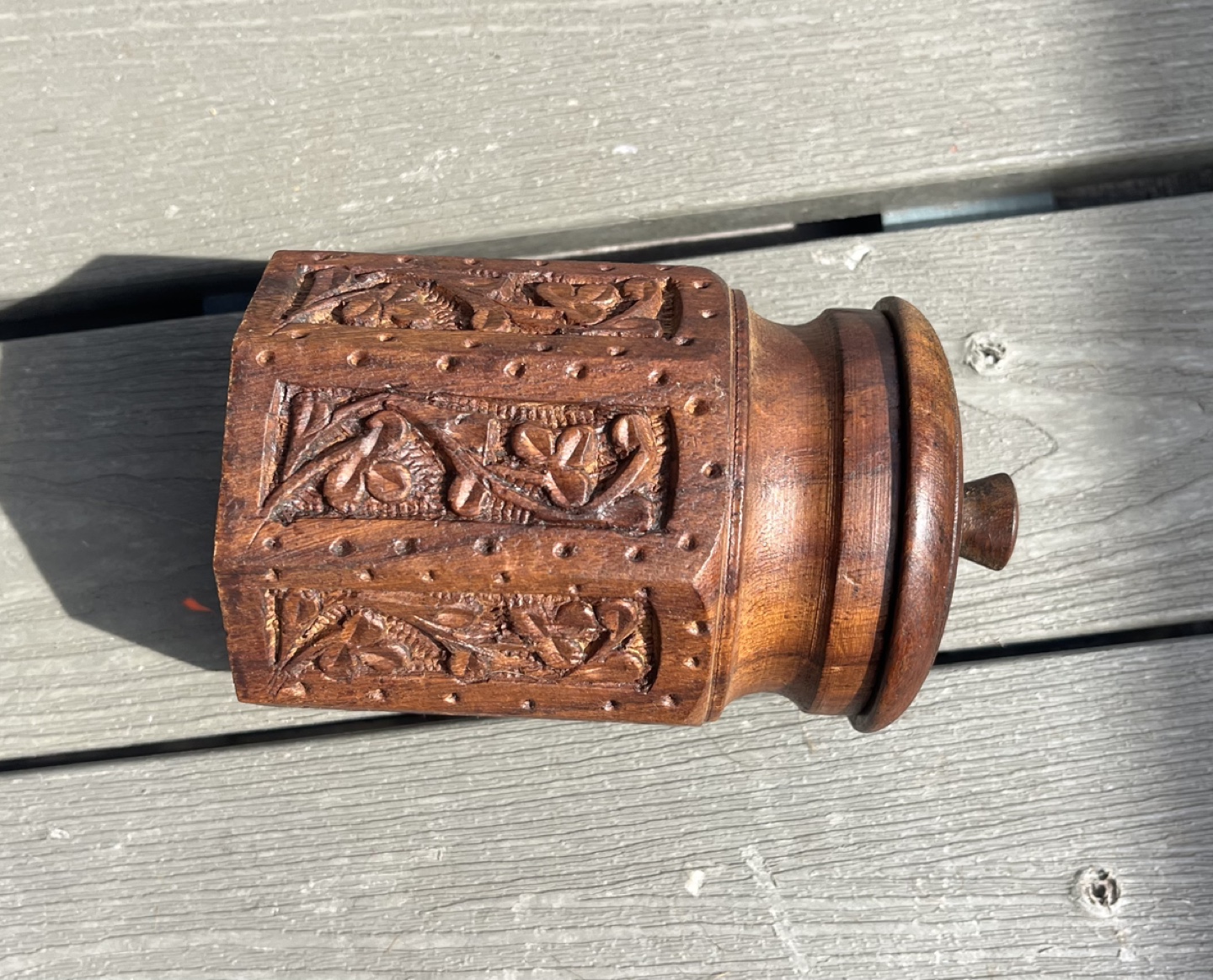 1 / 41 / 4Buy & SellHand-Carved Wooden Jar with LidHand-Carved Wooden Jar with Lid$20Octagonal wooden jar. Intricate floral carvings. Features a fitted lid. Dark brown wood. Unique collectible.WHERE TO MEETMy houseView MapSELLERStephenMurray966 reviews0 chats·1 favorites·49 viewsSEND CHAT TO SELLERHi Stephen! I’m interested in your listing.Hi Stephen! I’m interested in your listing.Get the Karrot app to chatSign In to chat