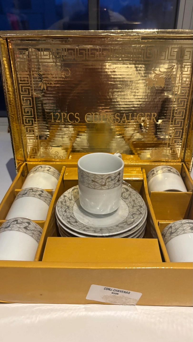 266Elegant patterned 12-piece cup and saucer set. Perfect for tea time. •BNIB •Six Espresso Cups and Six Saucers