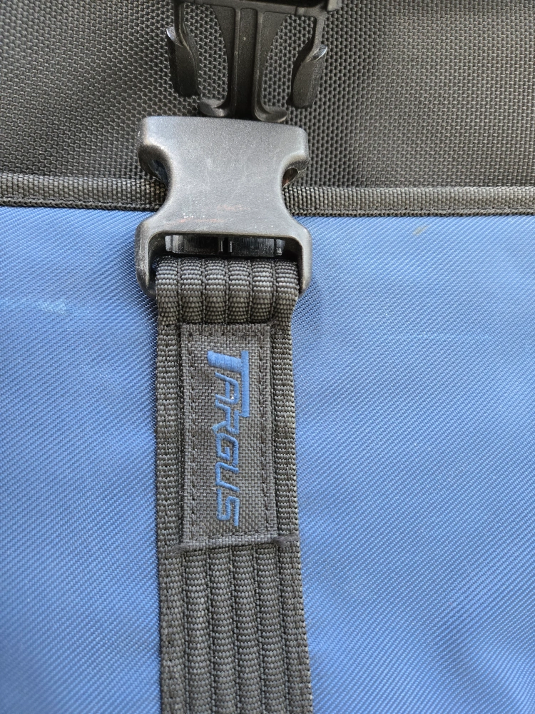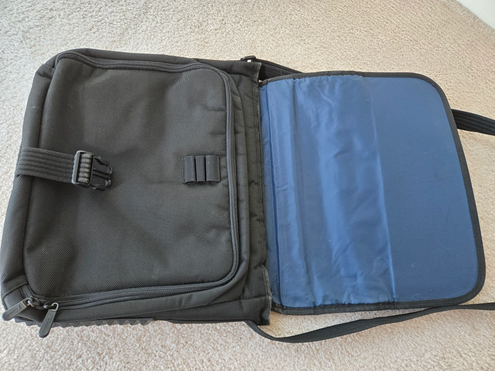 Targus messenger bag. Black and blue. Adjustable shoulder strap. Multiple compartments and pockets. Perfect for carrying a laptop and other accessories. The approximate dimensions are 15" x 14" x 5"