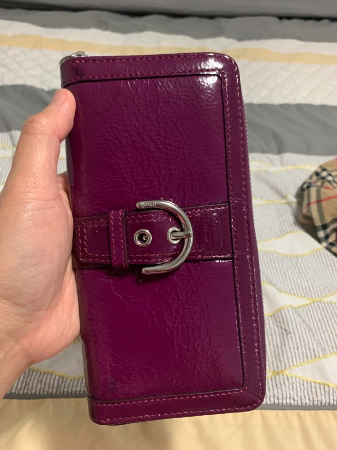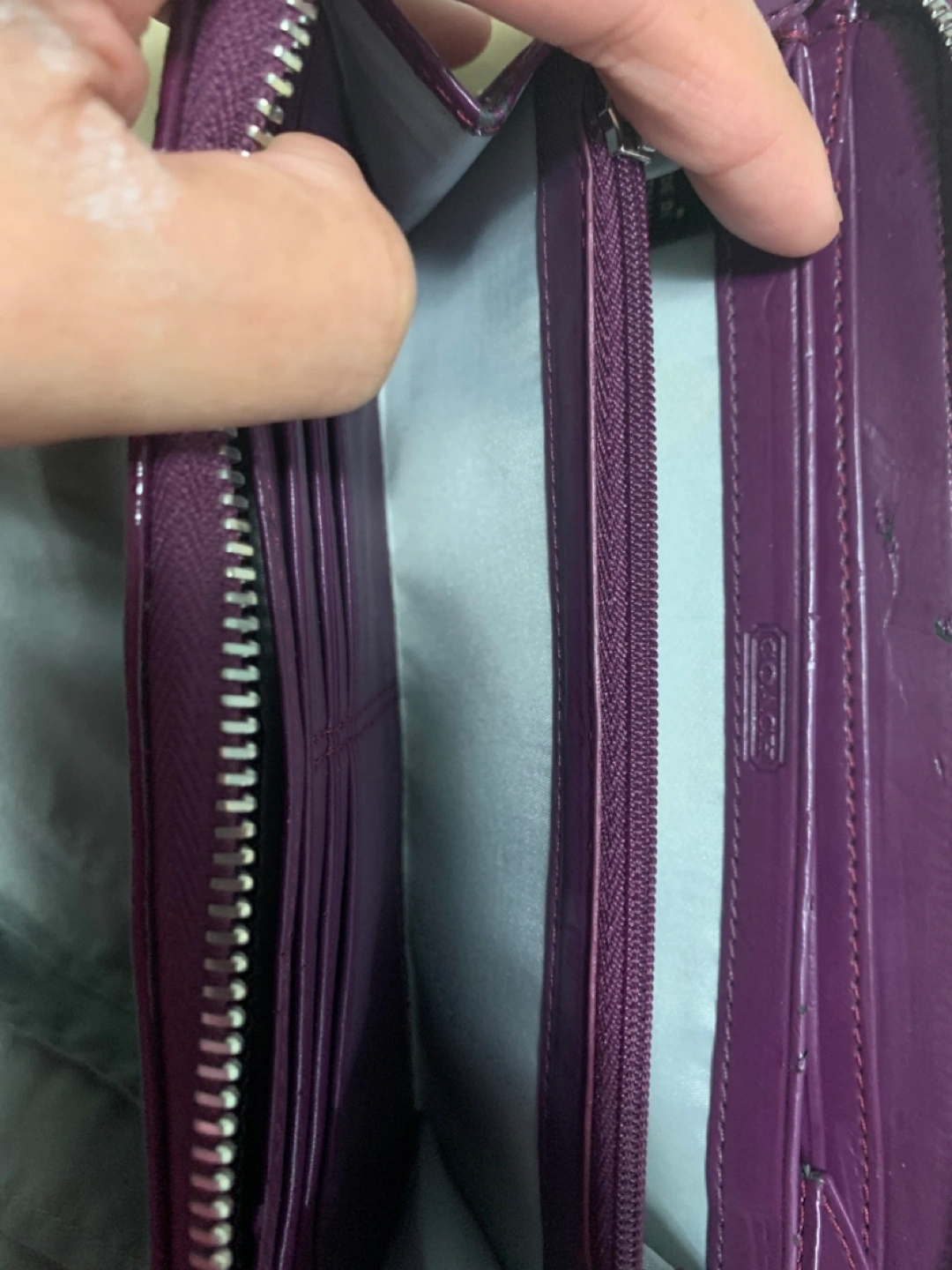 Gorgeous purple patent leather Coach wallet. Zip closure. Multiple card slots and compartments. Great condition.