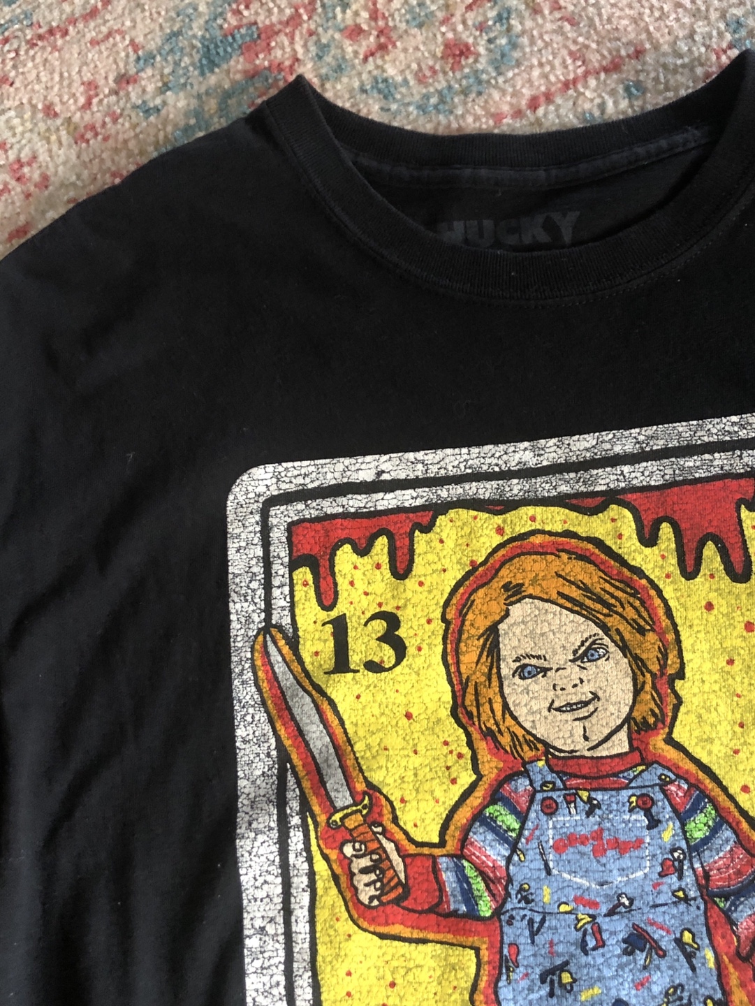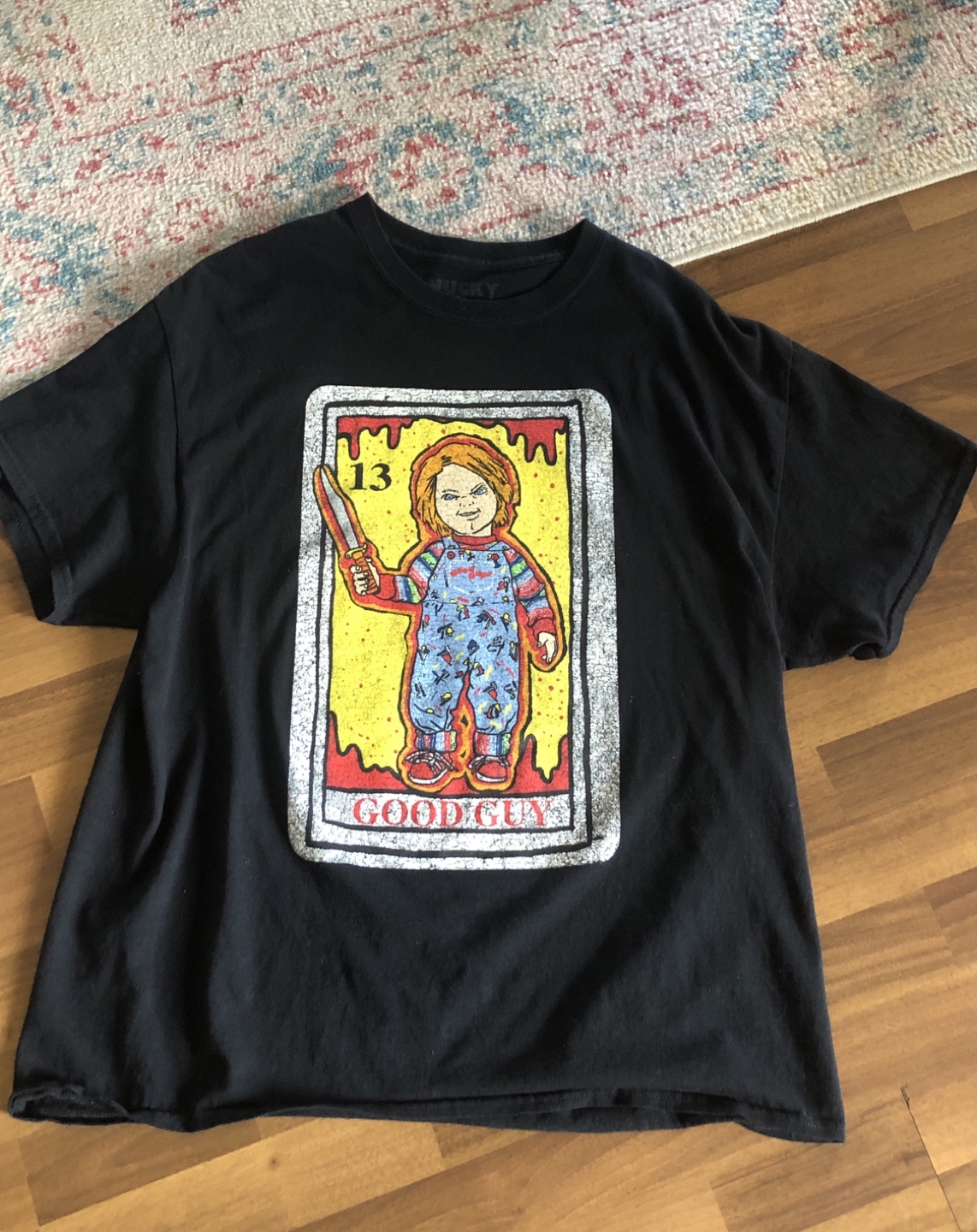 Buy & SellChucky Tarot Card Graphic T-ShirtChucky Tarot Card Graphic T-Shirt$15Black short sleeve t-shirt. Features a Chucky tarot card graphic. Good condition. Men's size large.BrandUniversal StudiosWHERE TO MEETWhitehornView MapSELLERamonyyWhitehorn574 reviews0 chats·0 favorites·11 viewsSEND CHAT TO SELLERHi amonyy! I’m interested in your listing.Hi amonyy! I’m interested in your listing.Get the Karrot app to chatSign In to chat